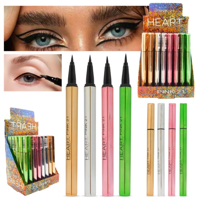 (Pack de delineador fibra color negro. Sólo cambia de color el envase pero por dentro del producto es del mismo tono, negro. Para el uso externo solamente. Producto aprobado en anmat. Con una tapita en forma de corazón. Se vende por caja de 48 unidades. Categorizado en: Maquillaje).