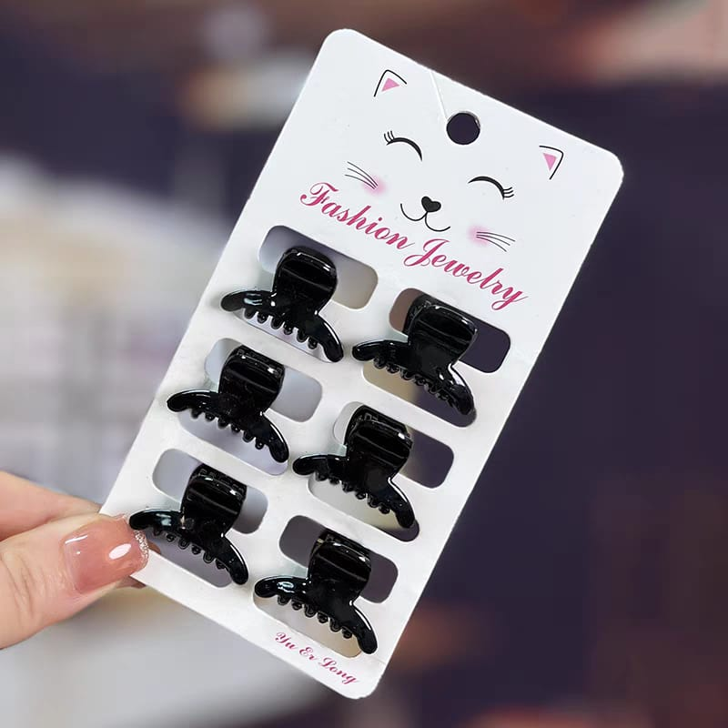 (Broches para pelo pequeño de diseño arqueado, color negro. Cuenta en total con 6 dientes.)