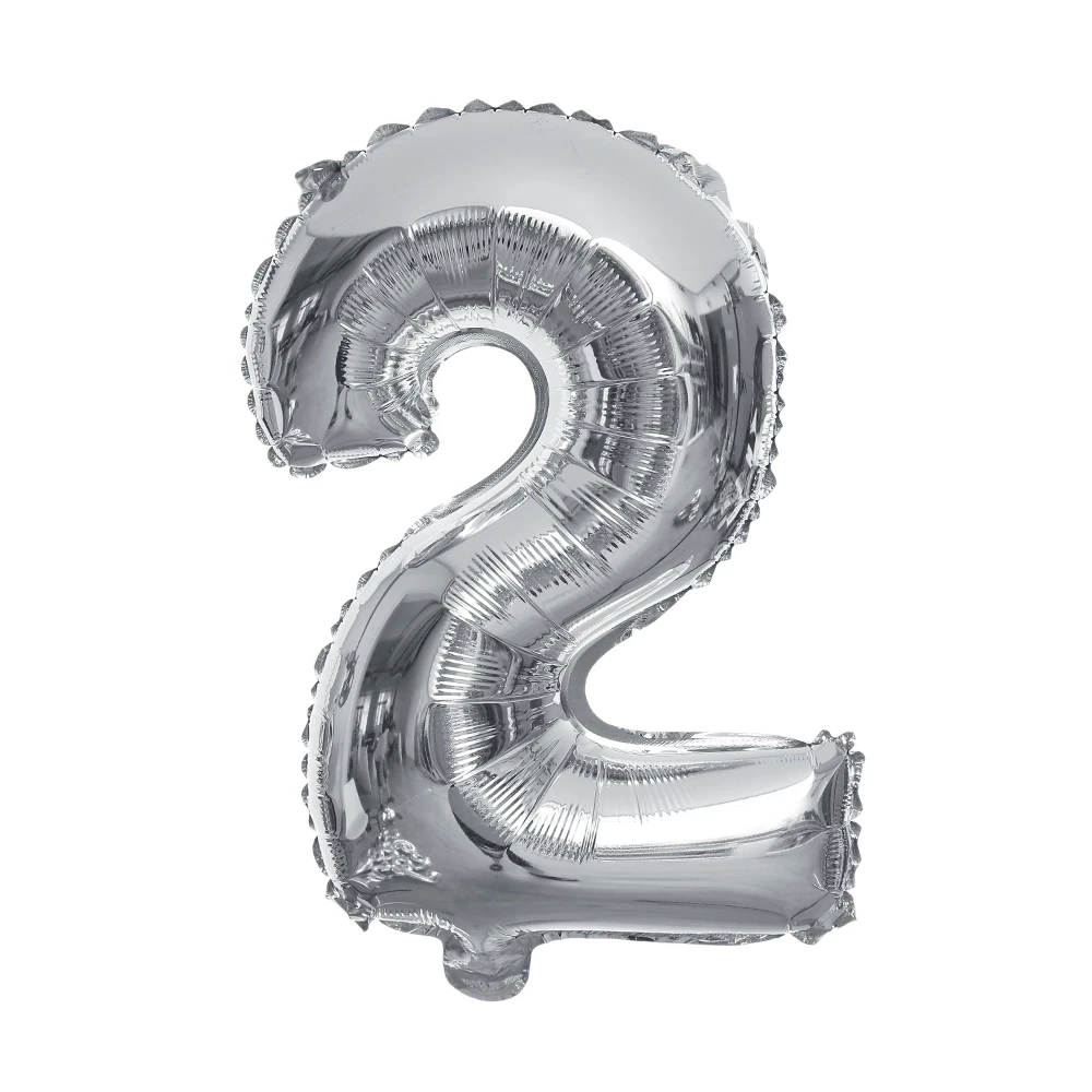 (Globo de 16" pulgadas en forma de numero 2, color plateado metalizado, trae consigo una pajilla para poder inflarlos fácilmente).