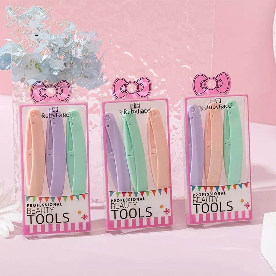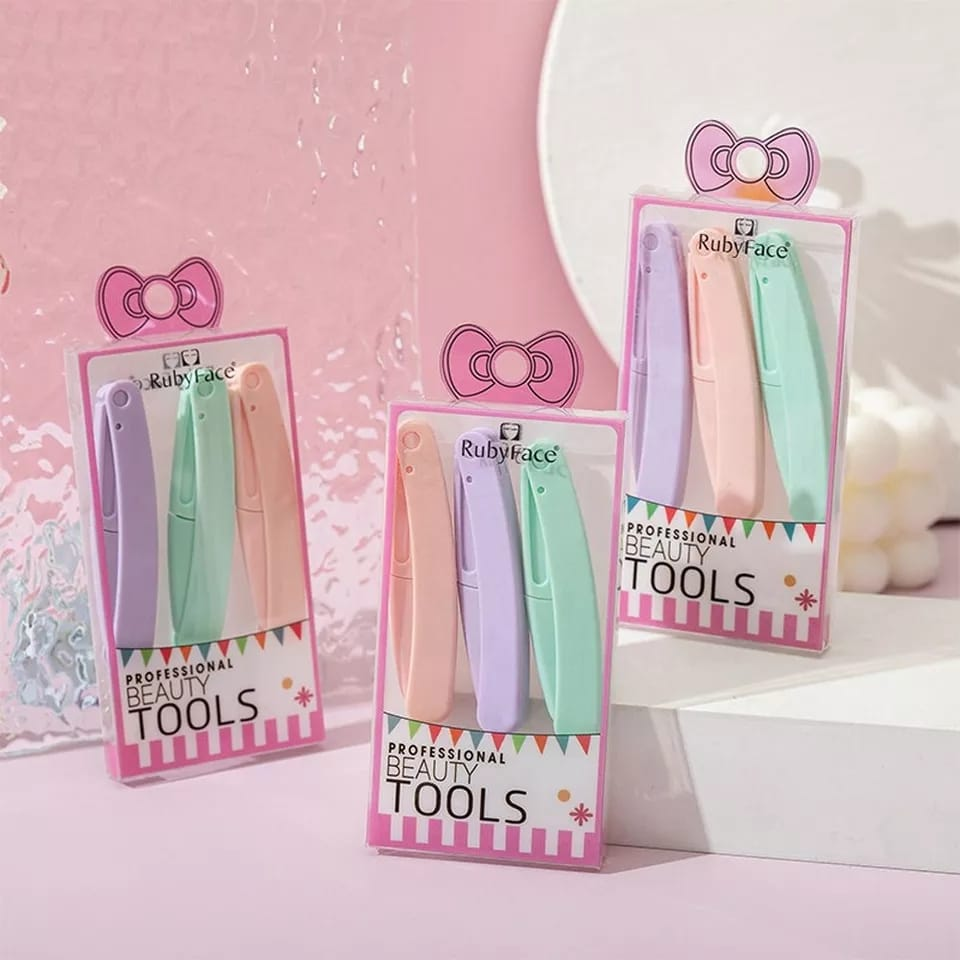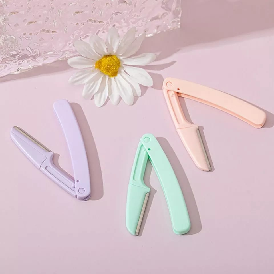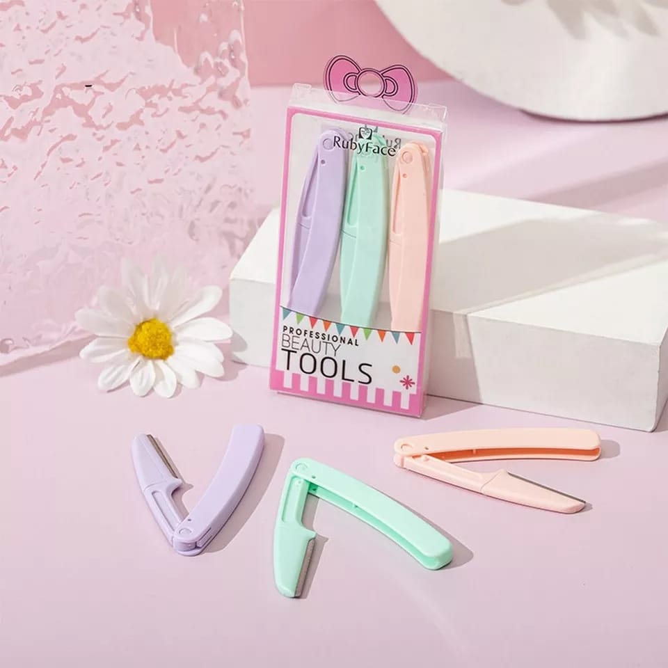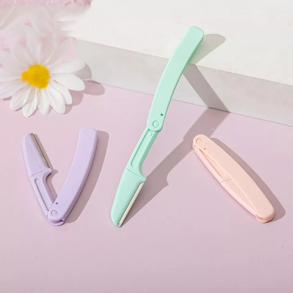 (Blister x3 navajas perfiladoras de ceja. Vienen en colores urtidos. Son de plástico de alta calidad y su hoja de acero inoxidable.)