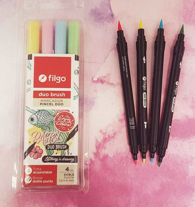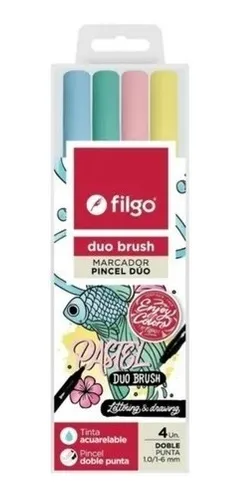 (Set con 4 unidades de marcadores pincel, punta doble colores surtidos. Punta pincel de 1-6 y punta fina de 1.0.)