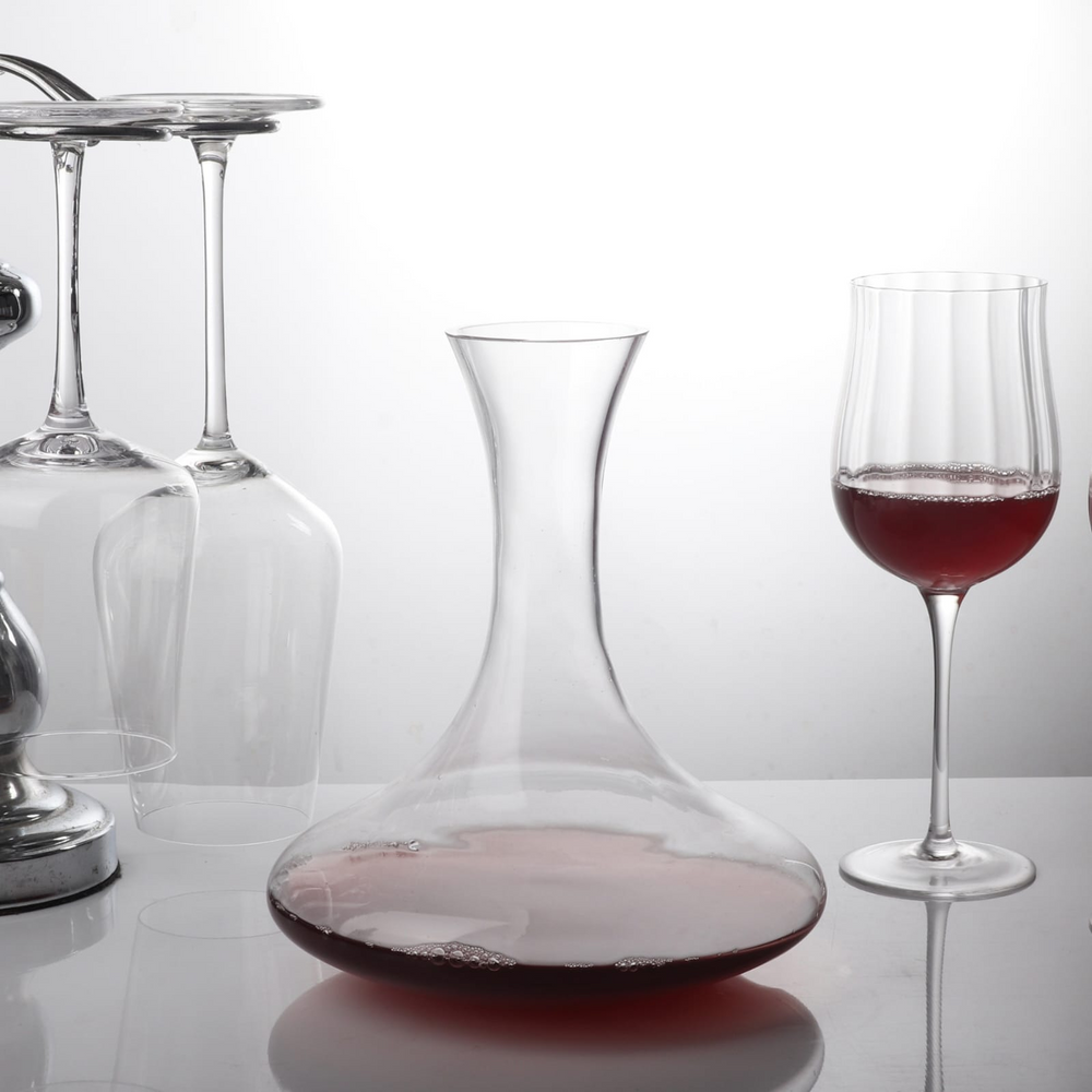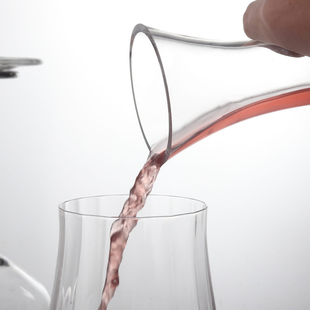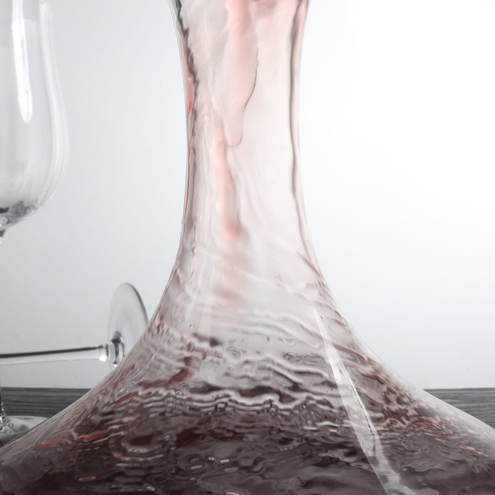 (El decantador de vino es una vasija de cristal/vidrio cuya base es más ancha que la boca con la finalidad es airear el vino fácilmente. El tiempo de oxigenación variará en función del tipo de vino y de cómo este se vea afectado por la acción del mismo. Capacidad 1500cc aprox).
