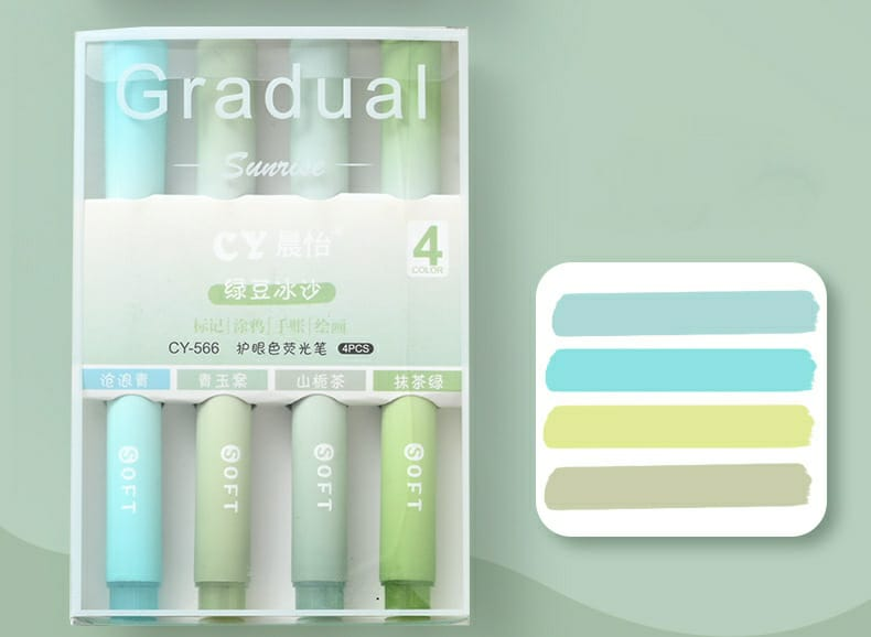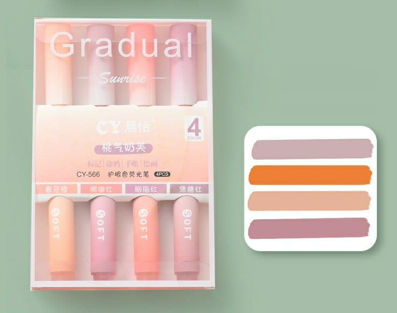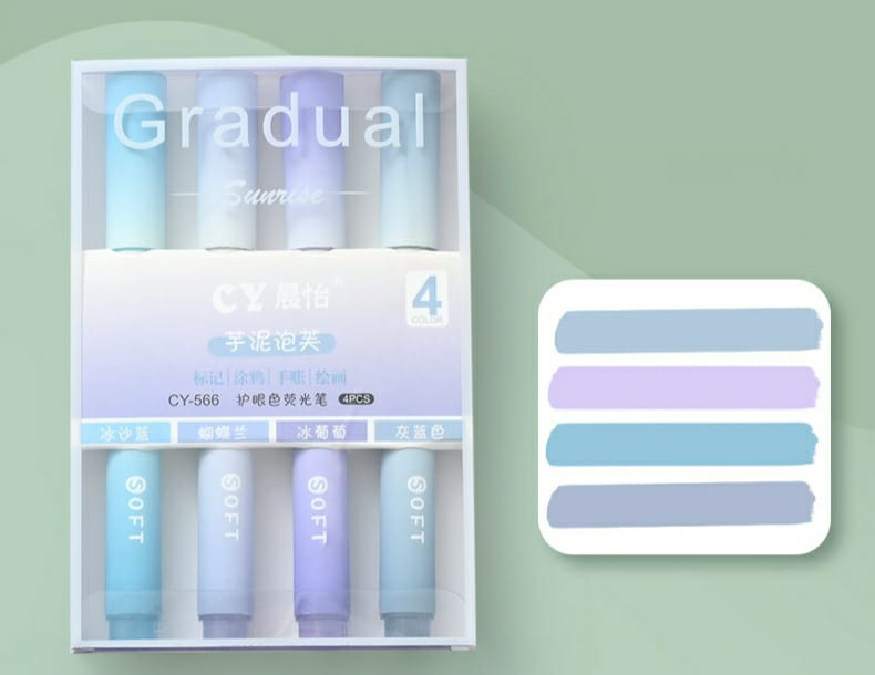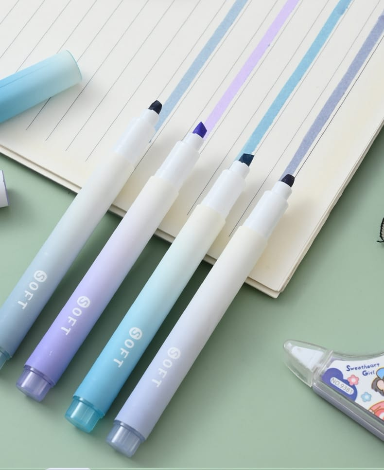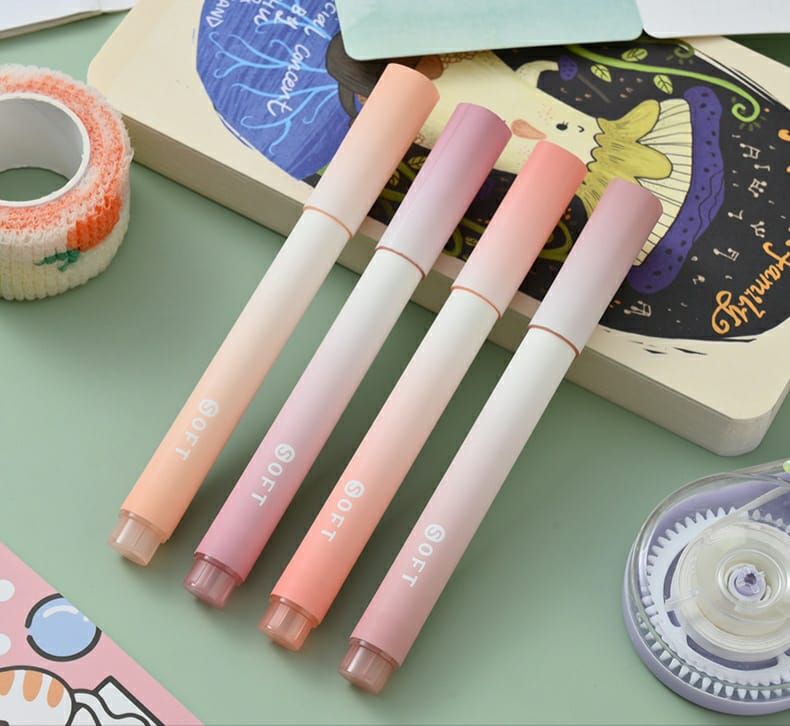(Set x 4 Resaltadores se colores diferentes para que puedas darle vida a tus notas y resaltar tus ideas de la manera más adorable. 3 Variedad de tonos a elección. Un diseño único y atractivo para darle color a tu escritorio o cartuchera).