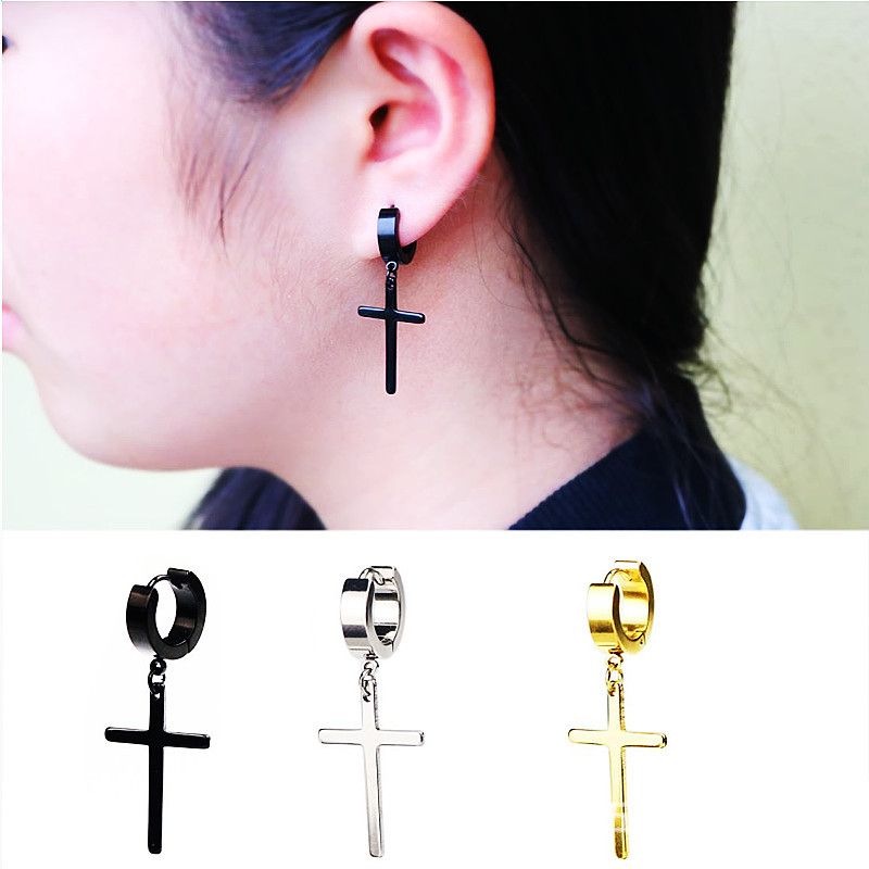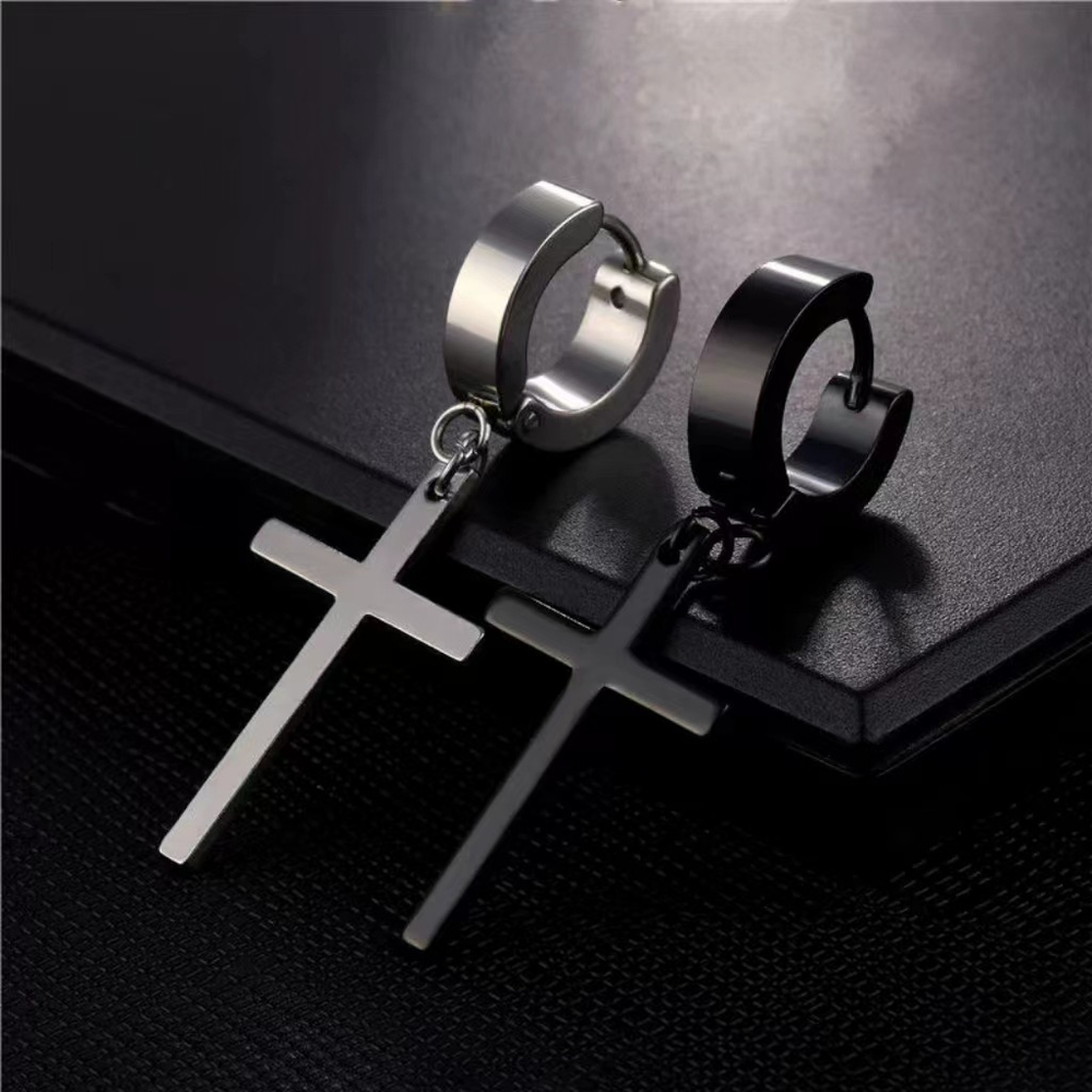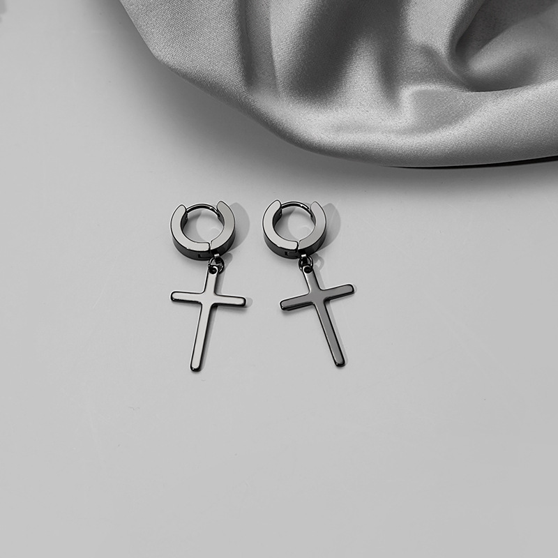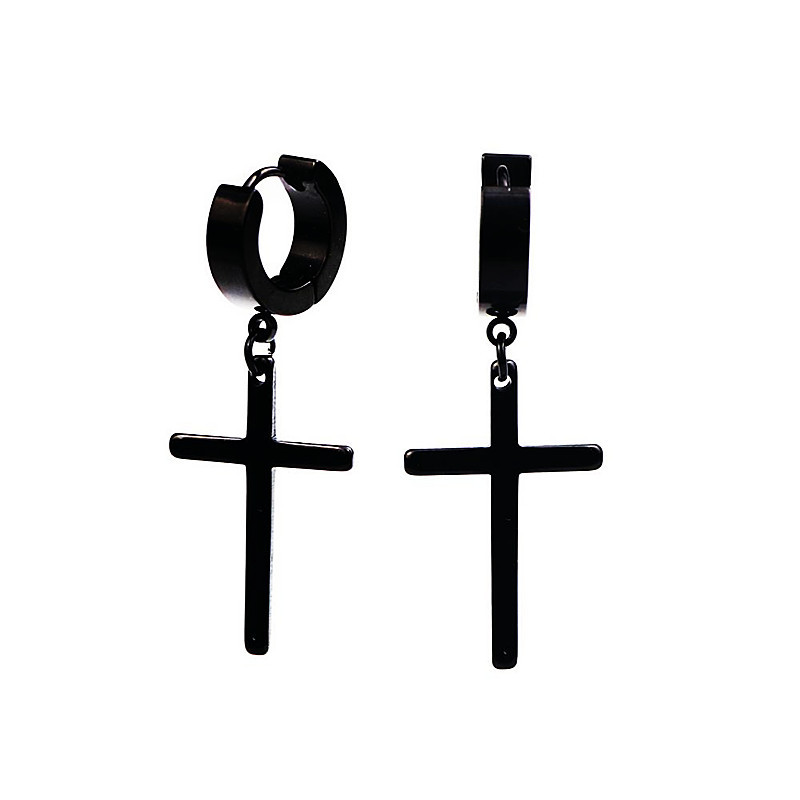 (Blíster x 12 Pares de Aritos con dije de Cruz Negro, super cancheras, ideal para resaltar tu look).