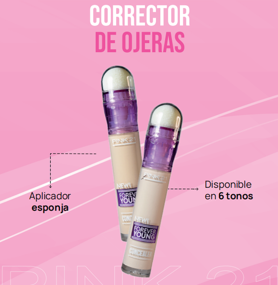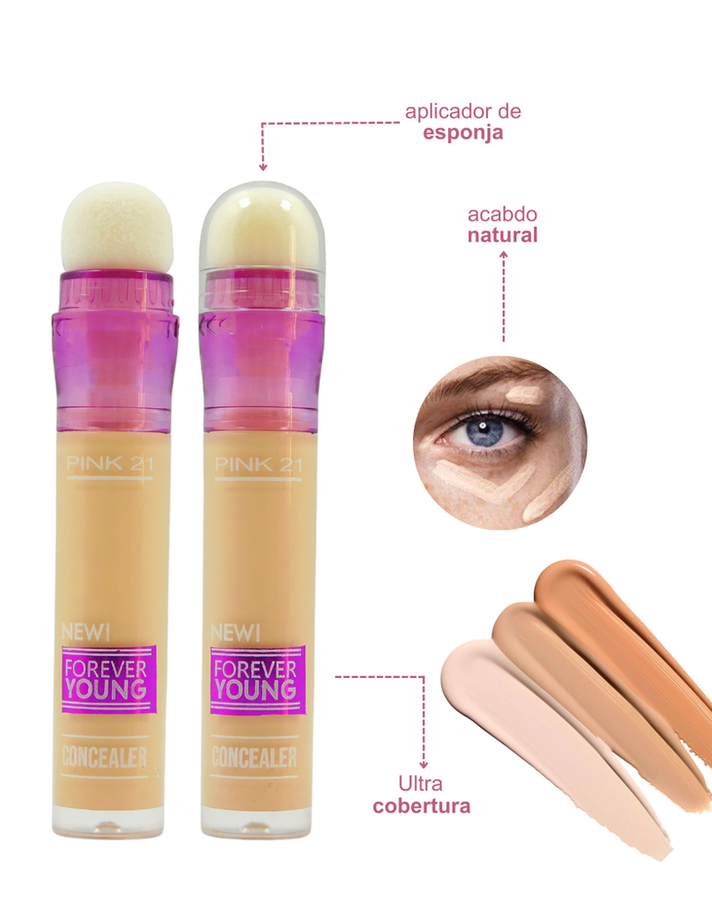 (Corrector Forever Young "Pink 21" cubre imperfecciones localizadas como ojeras, manchas, granitos o rojeces).