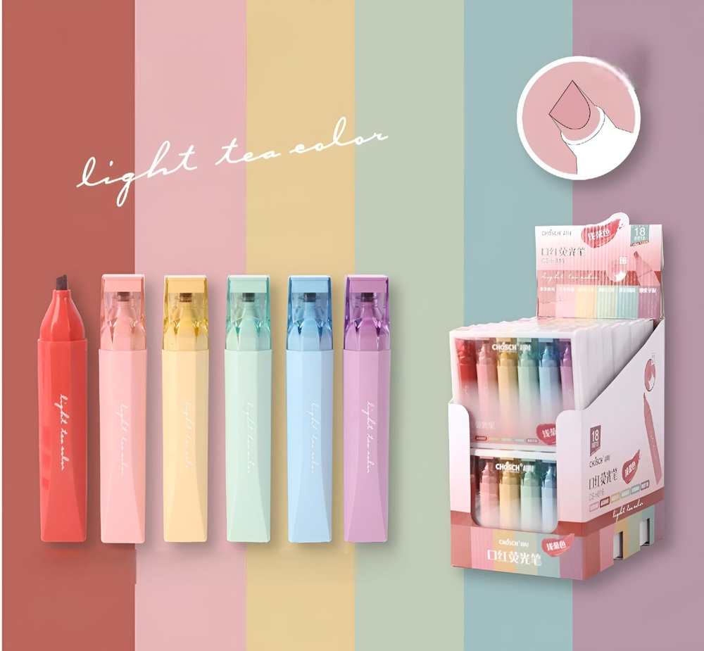(Tienen un diseño geométrico y minimalista. Punta biselada, lo que permite tanto un resaltado amplio como un subrayado fino. Son ideales para uso escolar, de oficina o para diseño gráfico).