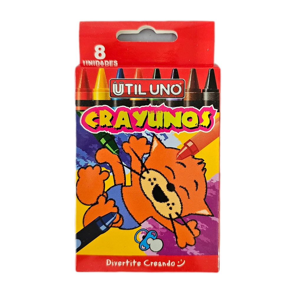 ((Crayones "Util Uno" x 8U. Cera de gran calidad, no tóxico, colores brillantes).