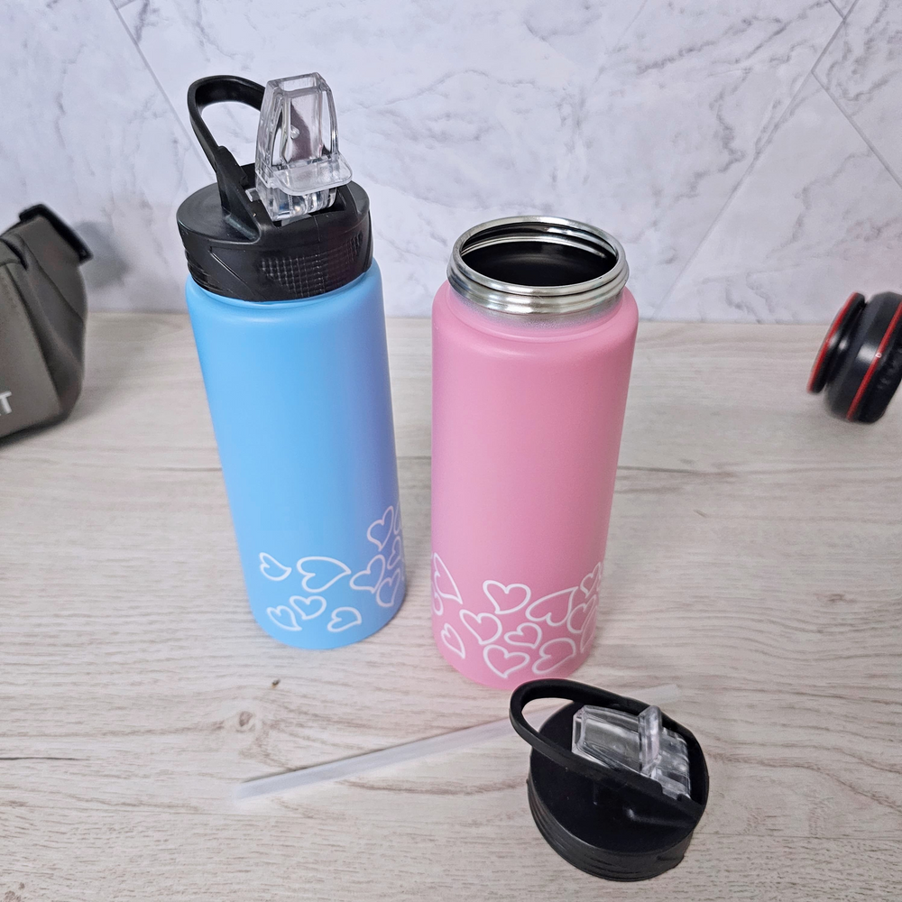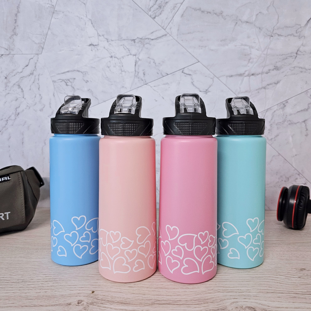 (Botella deportiva con corazones, pico y sorbete, capacidad 750 ml, excelente calidad).