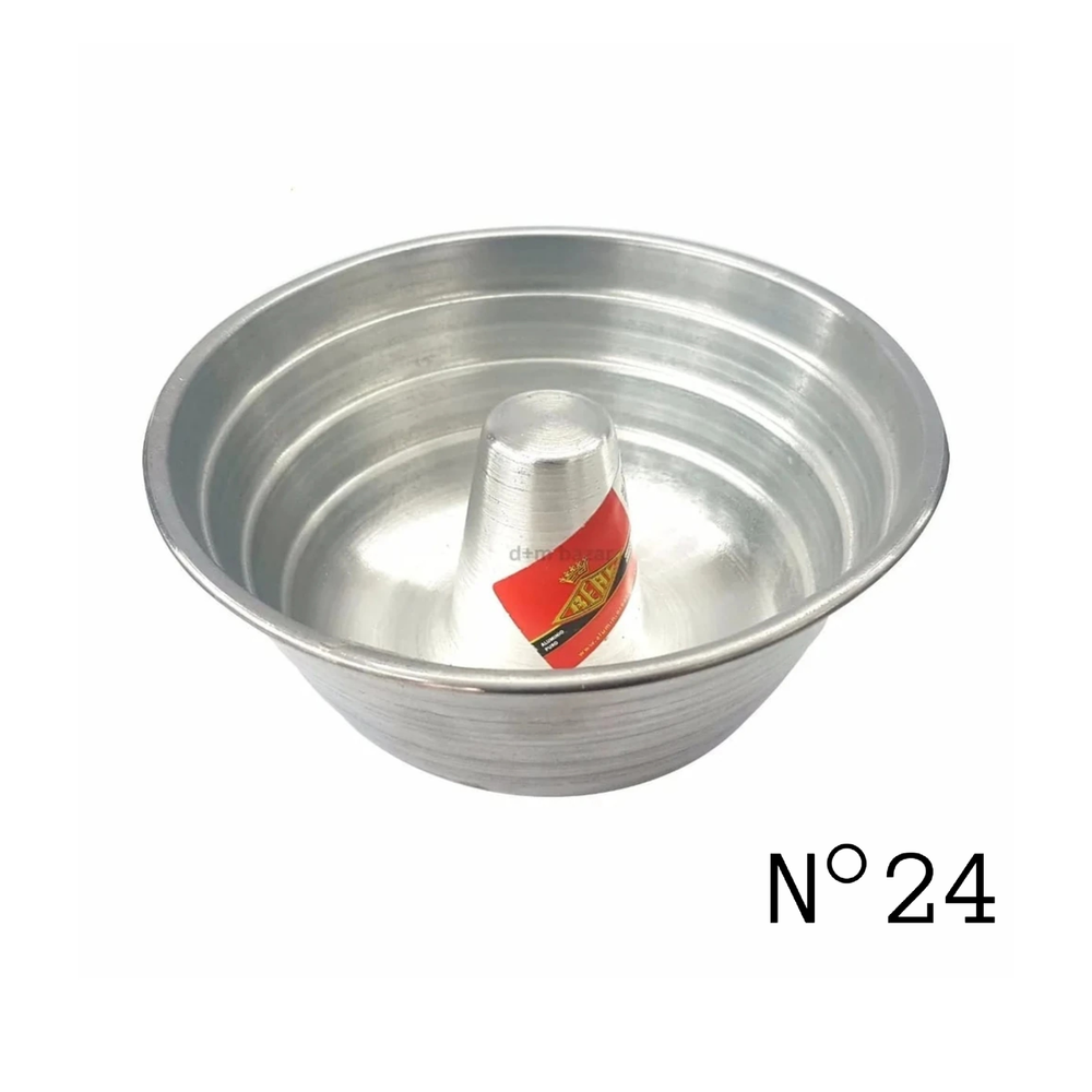 (Budinera con tubo N°24 marca ''Aluminio Real''. No se oxida, es de máxima durabilidad y es inalterable. No altera el gusto y olor a los alimentos, es de material liviano y un buen conductor de calor).