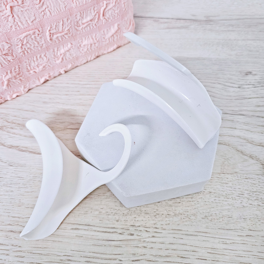 (Percha que sirve para colgar bolsos, carteras ya que su curvatura evita que las correas de las mismas se deformen, también se puede utilizar para otros accesorios como bufandas, cinturones y sombreros . De un material super resistente).