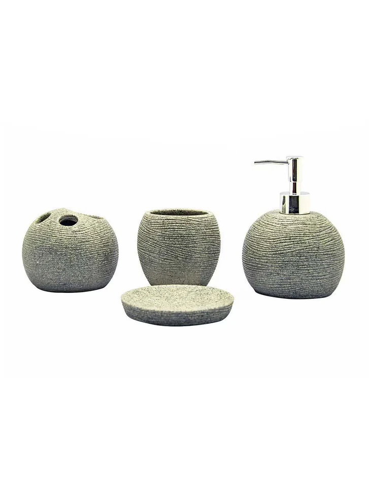 (Cuenta con 4 piezas: un dispenser, una jabonera, un portacepillos y un vaso de uso versátil. Ideal para dar un estilo más natural y elegante a tu baño).