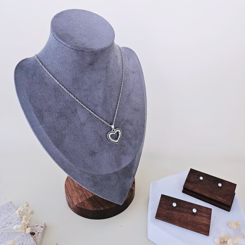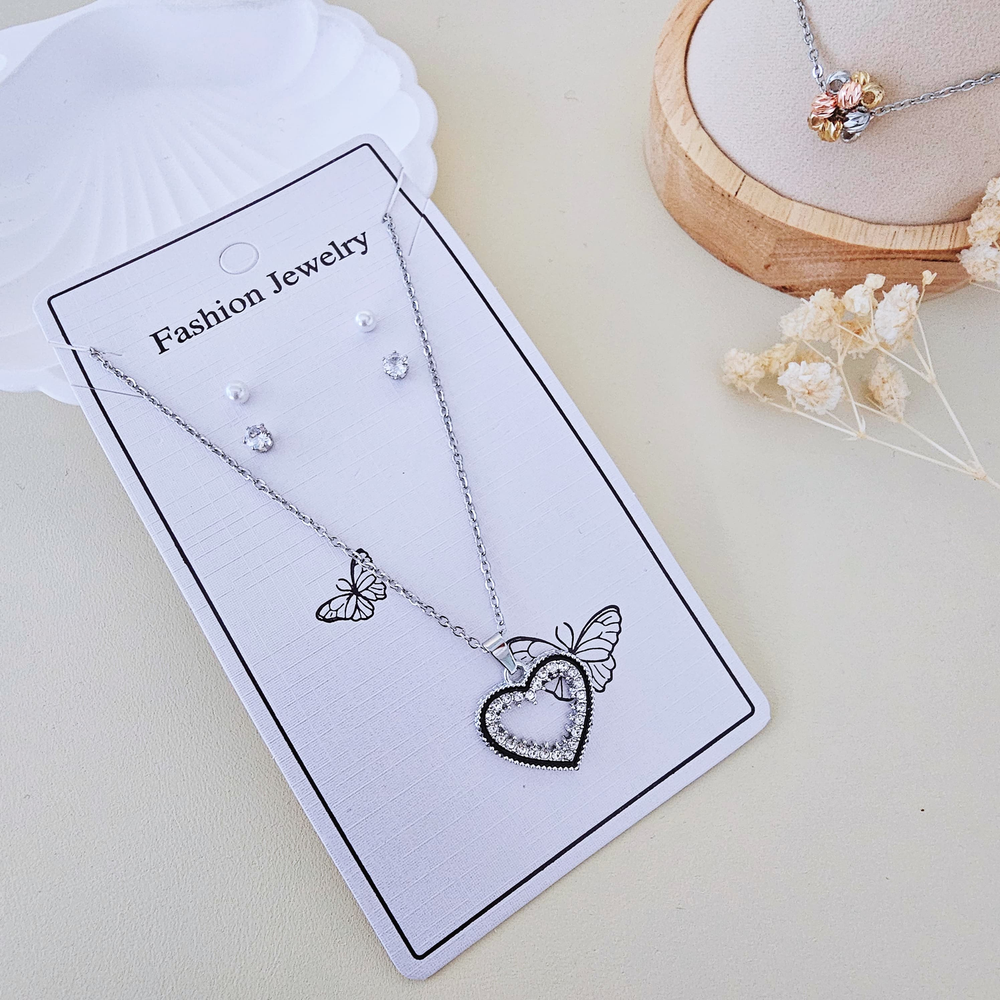 (Este set cuenta con 2 pares de aritos: perlas y strass, un collar y un dije con diseño elegante y estético. Ideal para resaltar tu belleza y atuendo).