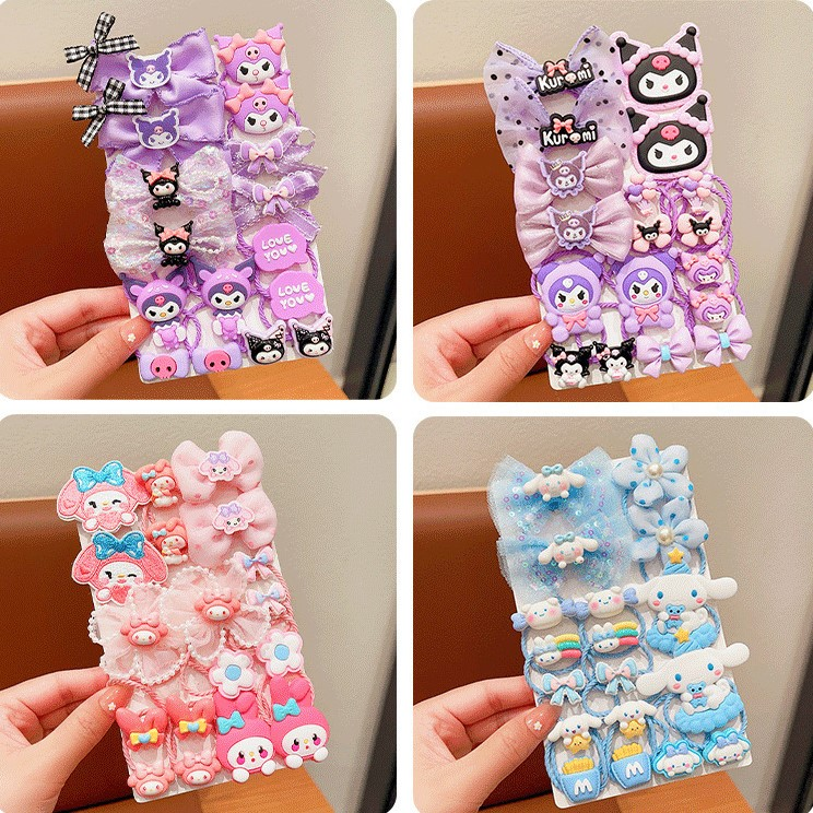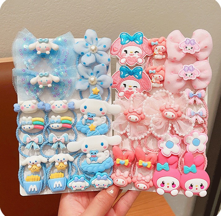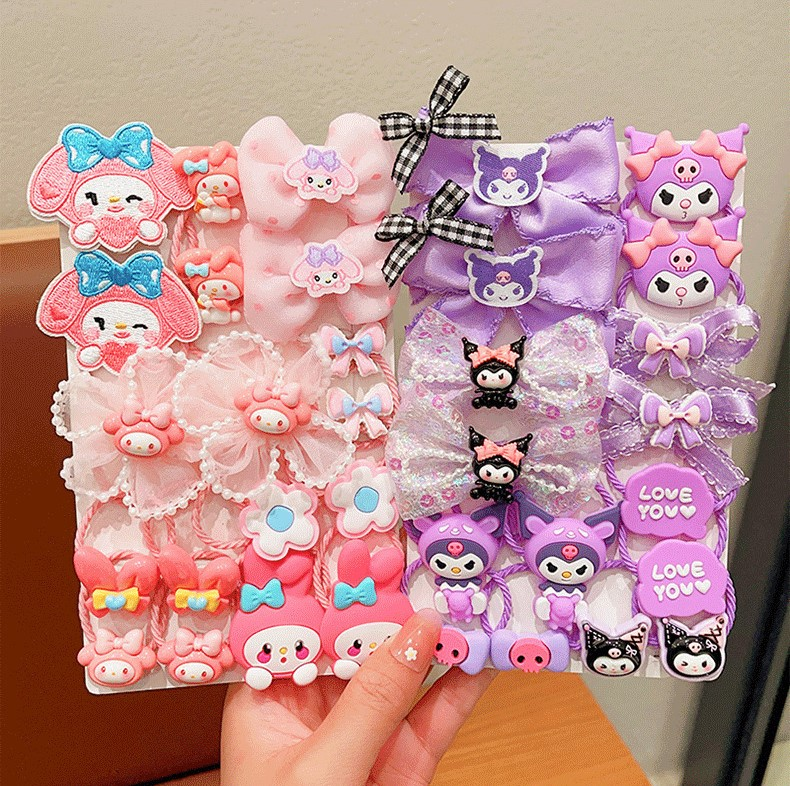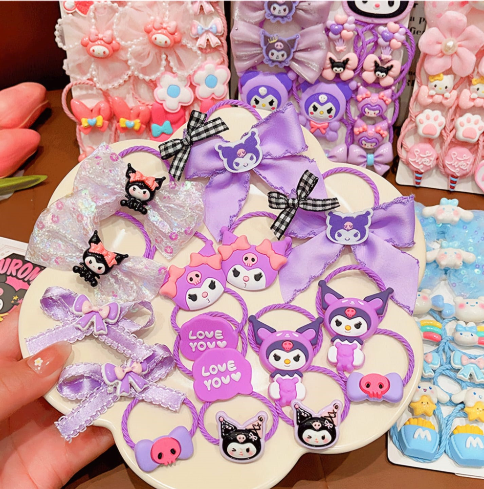 (Cada blister cuenta con 9 pares de colitas con diferentes diseños de personajes de Sanrio: Kuromi, Cinnamoroll y My melody.).