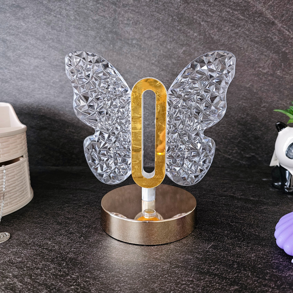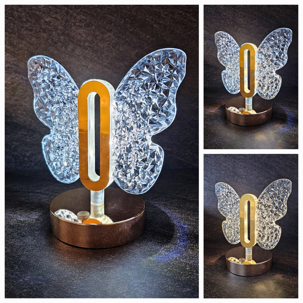 (Su diseño es en forma de mariposa con piedra acrílica a su alrededor. Cuenta con 3 tipos de iluminación: frío, cálido y mixto. Es recargable vía USB, incluido).