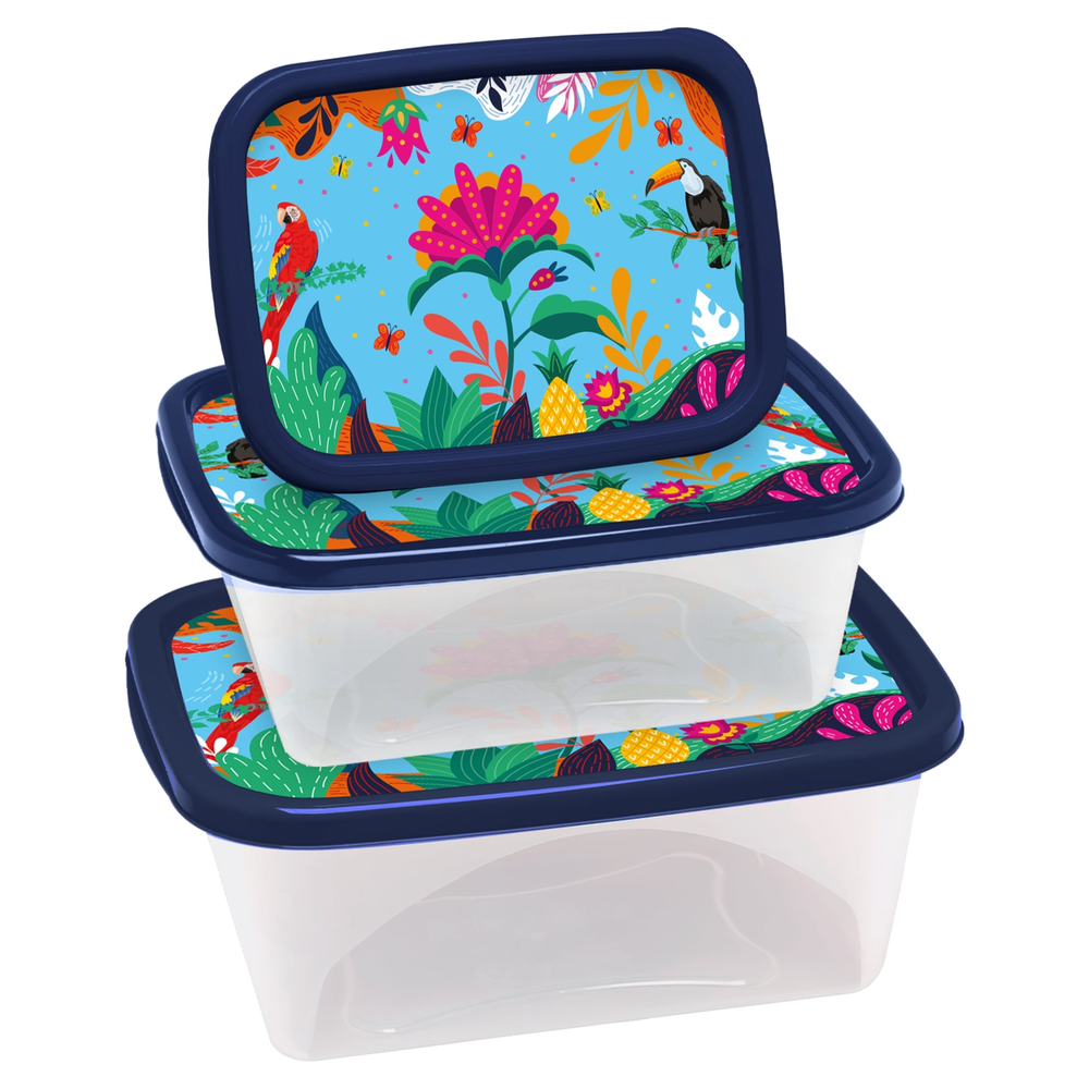 (Set de tuppers de excelente sellado y resistencia; decoraciones temáticas duraderas que hacen que su cocina sea más divertida, son Ideales para la organización en general y cuentan con sistema apilable).