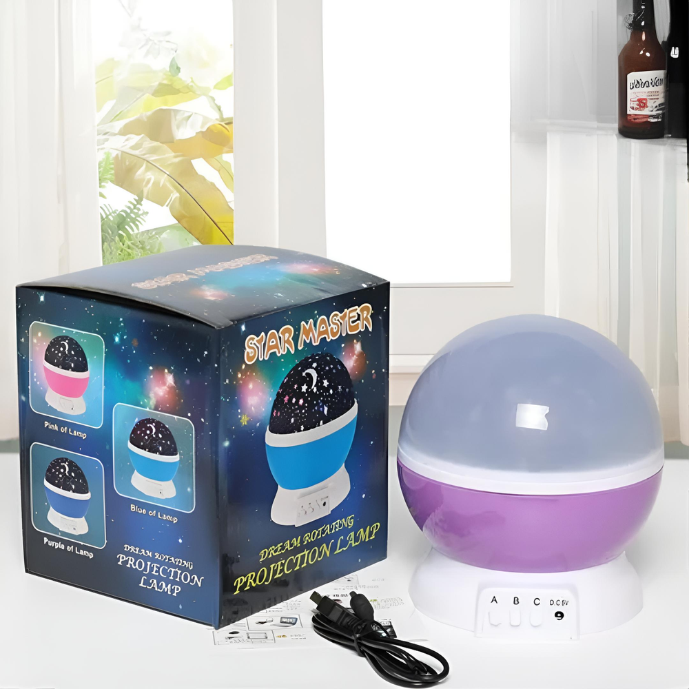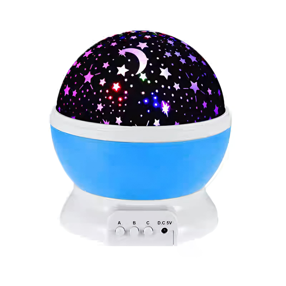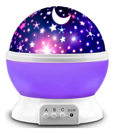 (Proyector de Lámpara Nocturna con diseños de estrellas, varios colores a elección y combinaciones que puedes hacer. Puede ser conectado con con cable USB o a 3 pilas AA).