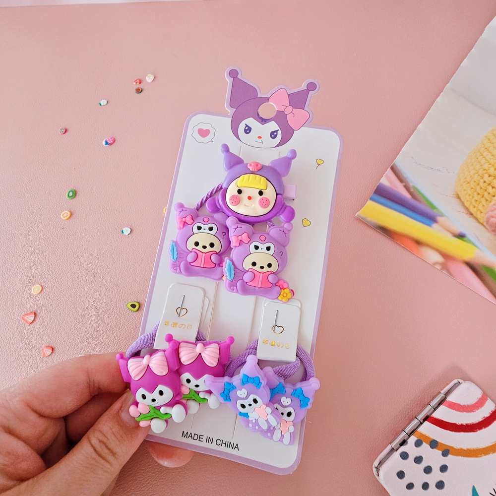 (Cada blister cuenta con una hebilla y 3 pares de colitas con accesorios de "Kuromi". Vienen 3 modelos diferentes. Ideal para realizar peinados).