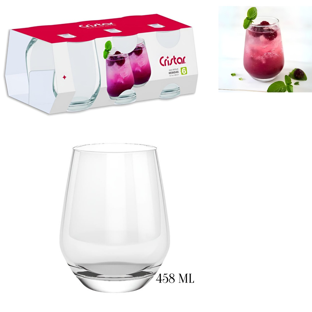 (Vaso sicilia marca "Cristar". Cada set trae 6 unidades con una capacidad de 458cc, aprox. Ideal para preparar tu bebida favorita).