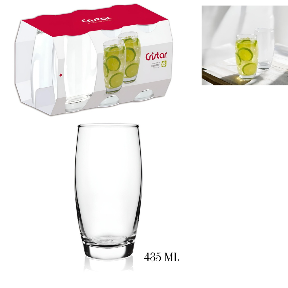 (Vaso dubai marca "Cristar". Cada set trae 6 unidades con una capacidad de 435ml, aprox. Ideal para preparar tu bebida favorita).