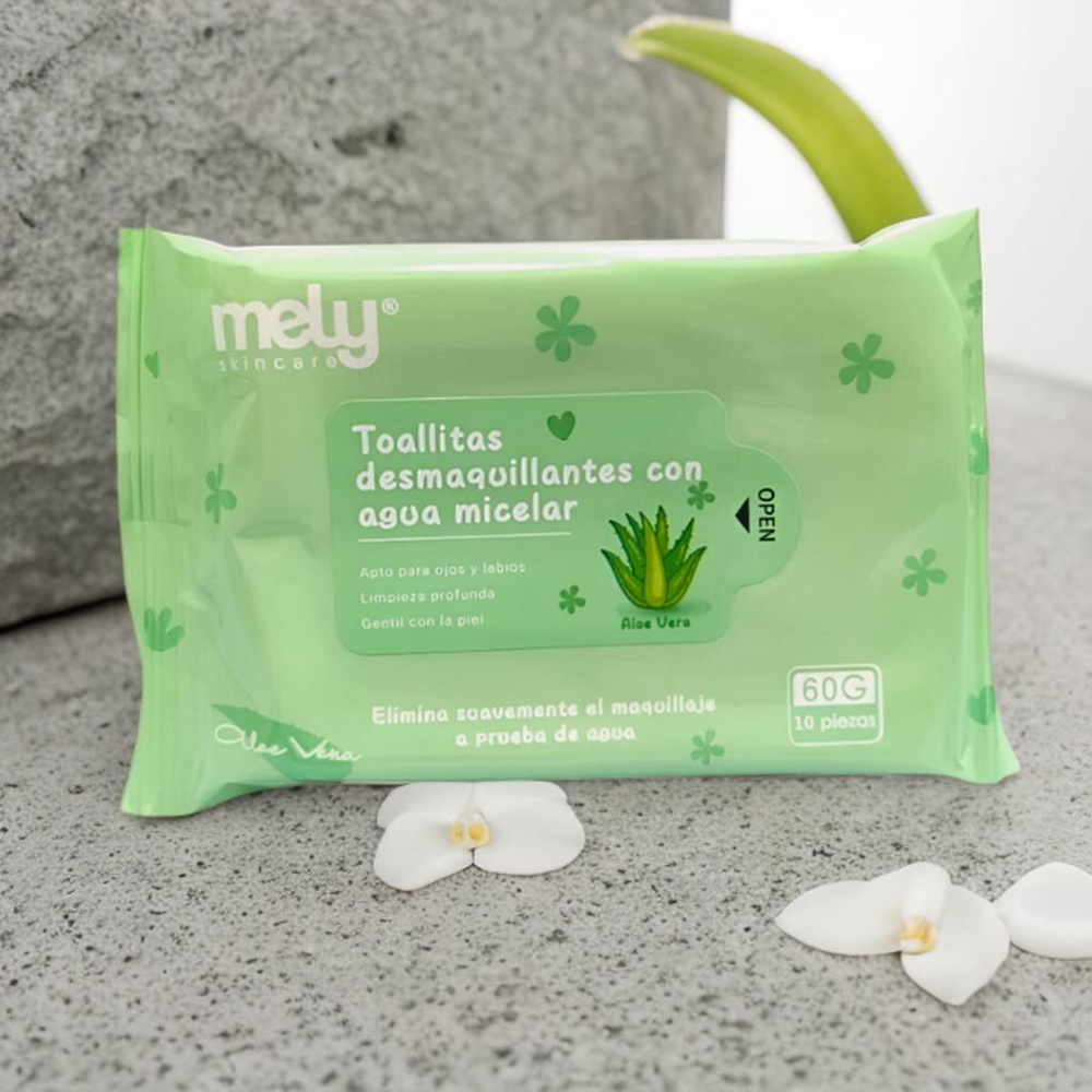 (Toallitas húmedas desmaquillantes, con aloe vera y fórmula vegana. Por paquete, contiene 12 toallitas. Ideales para quitar maquillaje a prueba de agua).