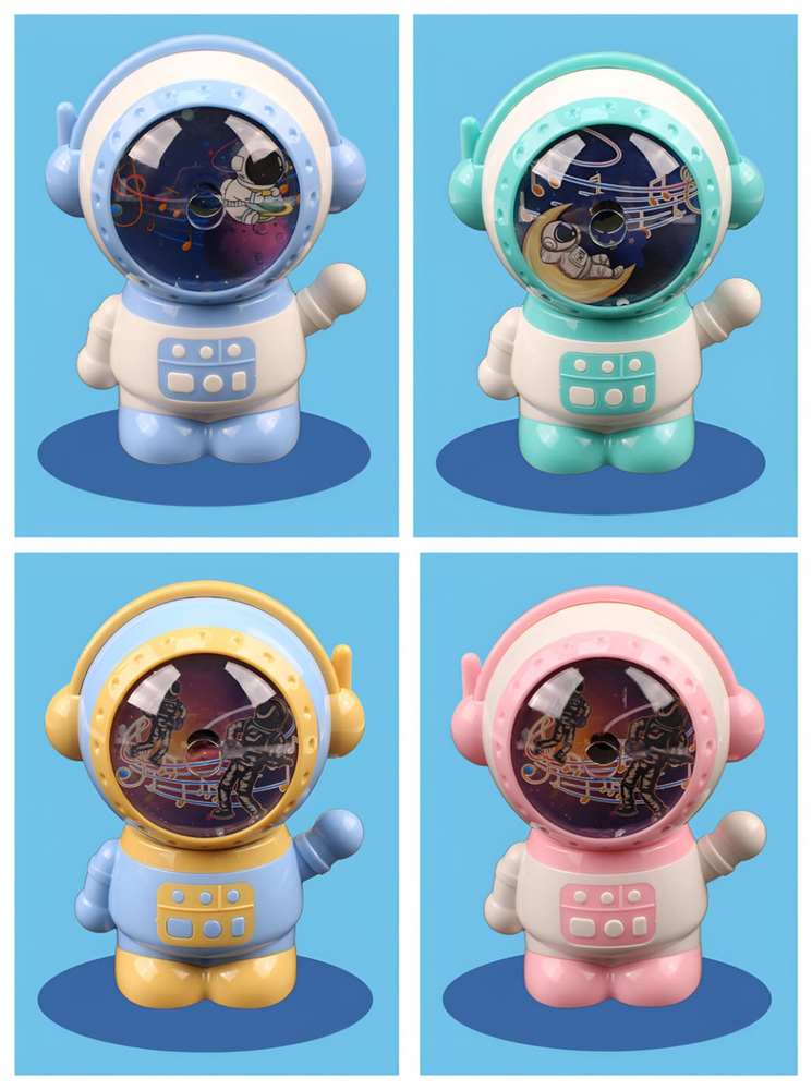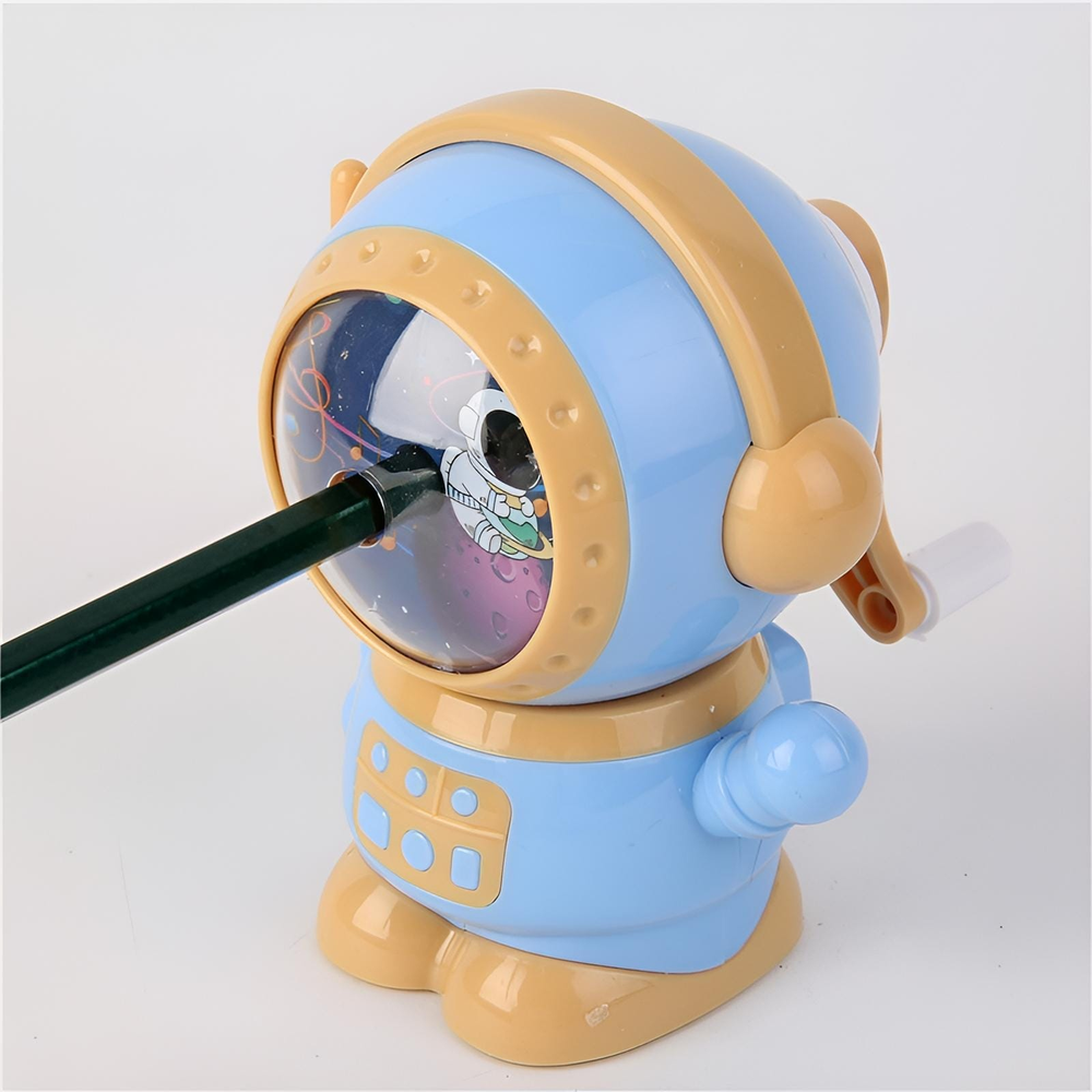 (El sacapuntas manual Astronaut es un producto único y divertido.Este afilador tiene un solo orificio, pero es capaz de sacar punta a tres tipos diferentes de lápices, lo que lo hace versátil y práctico. Además, viene con un cubo de basura, para que puedas mantener tu área de trabajo limpia y organizada).