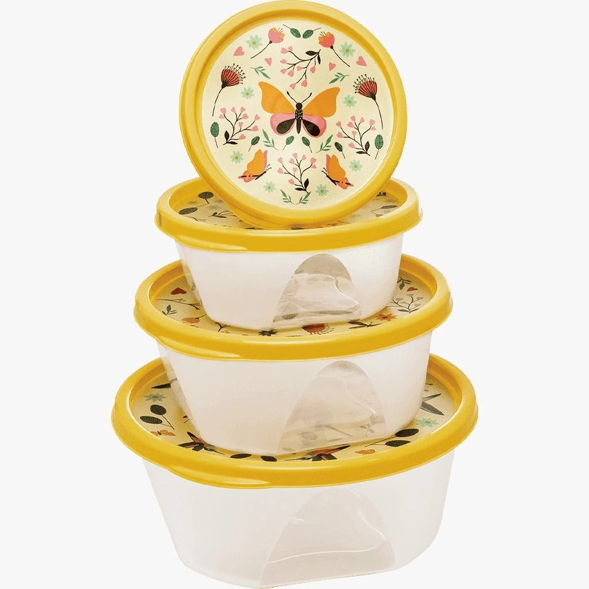 (Set de tuppers de excelente sellado y resistencia; decoraciones temáticas duraderas que hacen que su cocina sea más divertida, son Ideales para la organización en general y cuentan con sistema apilable).