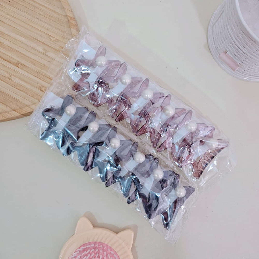(Broches para el pelo x12 unidades con diseño de estrella en tres colores, también cuenta con una delicada perla).