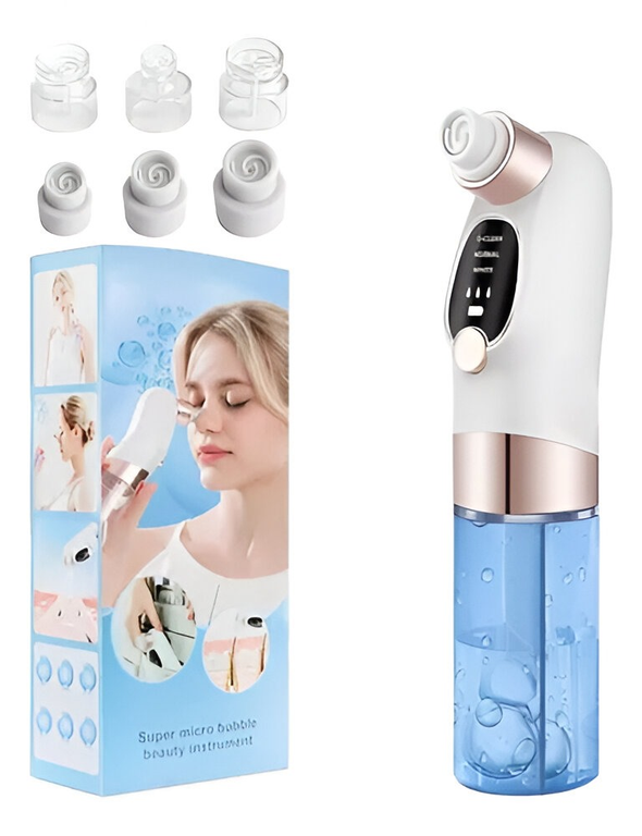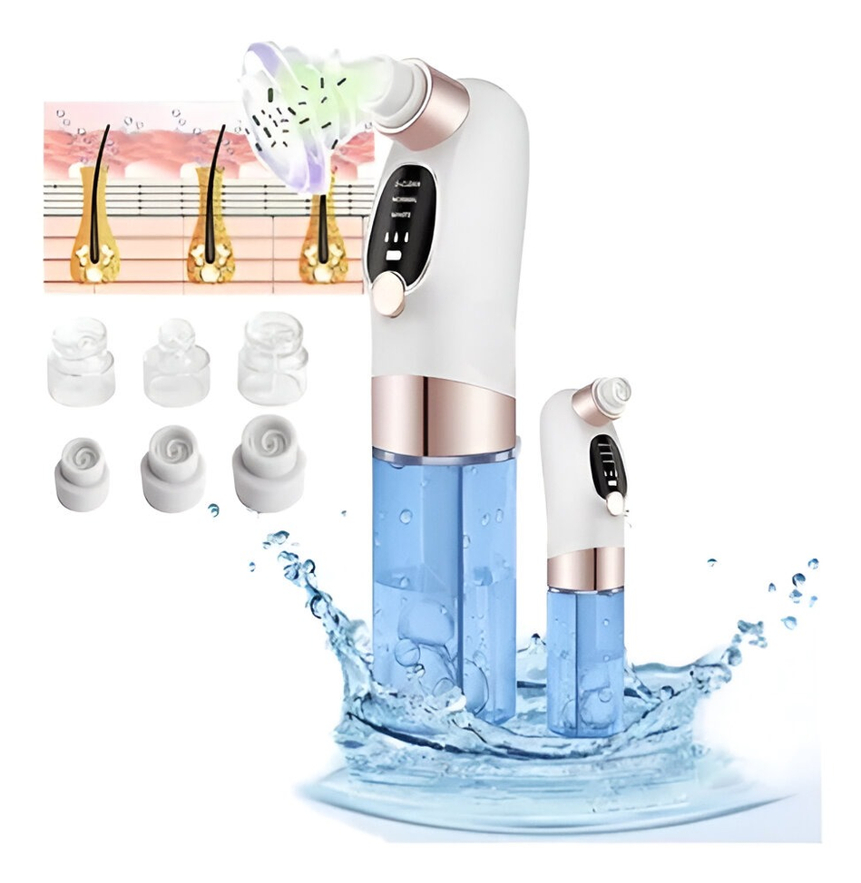 (Fabricado con materiales de alta calidad y con un diseño compacto y duradero. Tiene un sistema de doble recipiente que incluye un recipiente de agua fresca y un recipiente de aguas residuales para asegurar que al limpiar los poros, el agua limpia no se recicla para evitar infecciones de la piel. cuenta con 3 picos para succionar filamento e sebaceas o puntos negros y 3 picos de diferentes tamaños de silicona para limpieza con agua en diferentes áreas faciales. La punta pequeña es adecuada para limpiar zonas pequeñas como las comisuras de la nariz, la punta mediana es adecuada para limpiar alrededor de los ojos y la nariz, y la punta grande está diseñada para la frente y la cara).