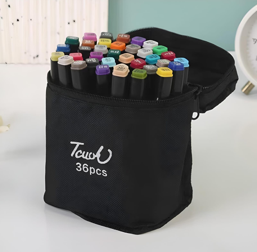 (Contiene 36 marcadores de 15 cm de largo, que cuentan con doble punta (una biselada de 6 mm y una fina de 1 mm) , con tapa codificada por colores. Brinda un secado rápido, colores vibrantes y no se corre. Ideal para regalar).
