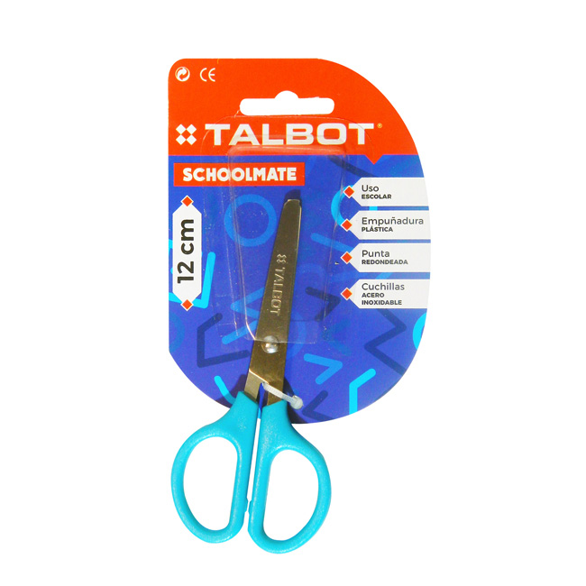 (Tijera marca " Talbot" con punta redonda con mango de plástico, cuchillas de acero inoxidable, para niños mayores de 4 años. Ideal para uso escolar).
