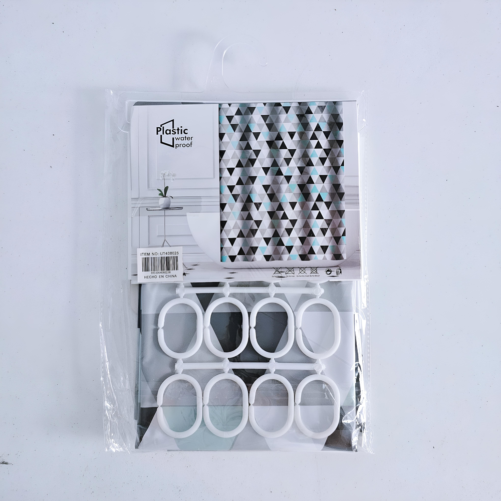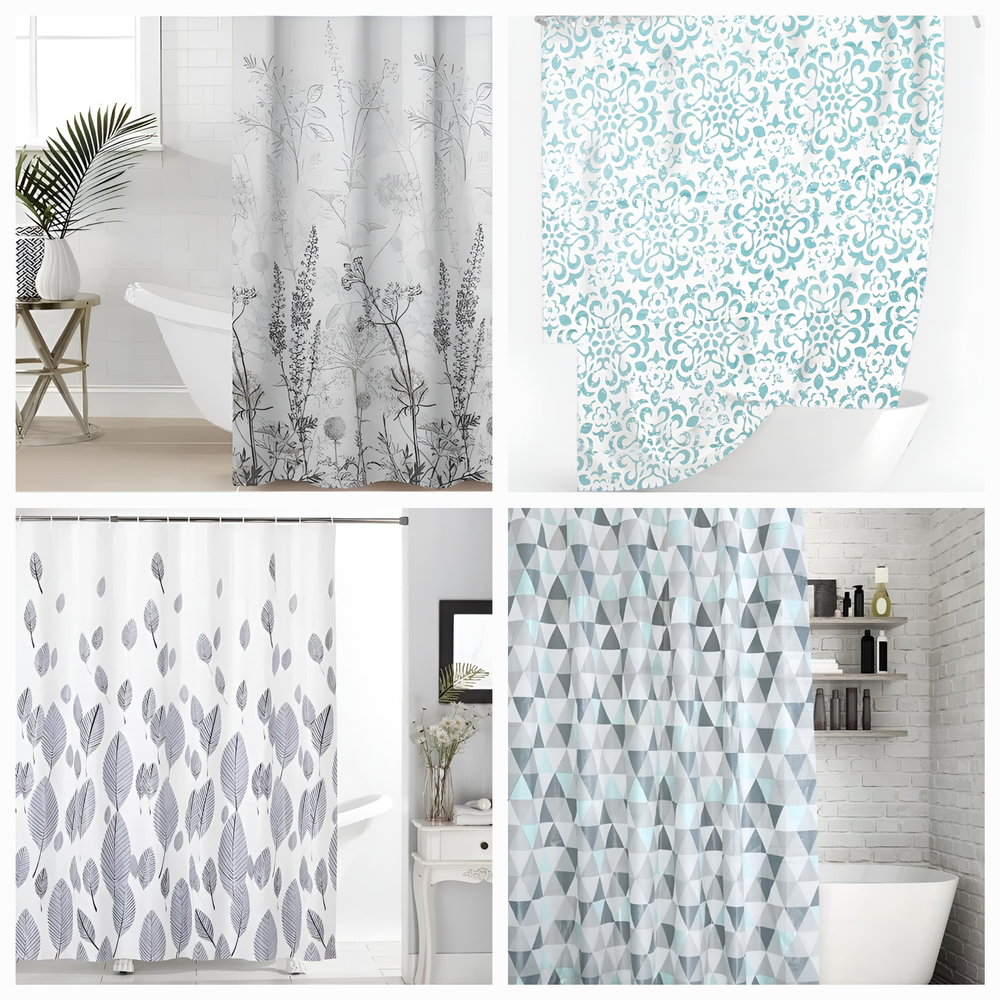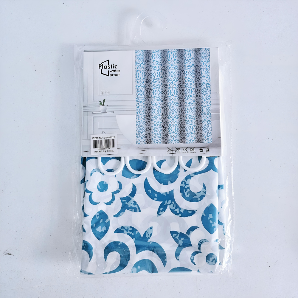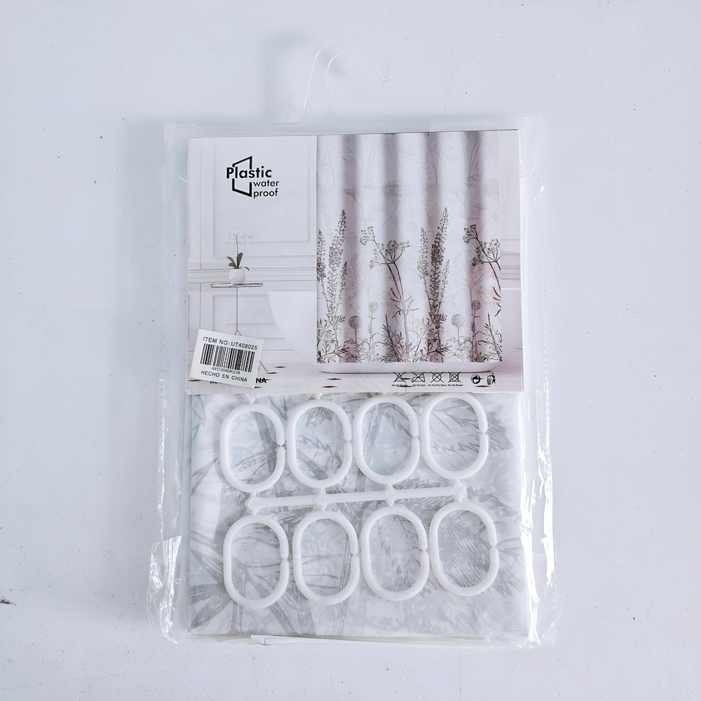 (Cuenta con una cortina de baño y 12 ganchos plásticos. Viene 4 modelos diferentes a elección. Ideal para tu hogar).