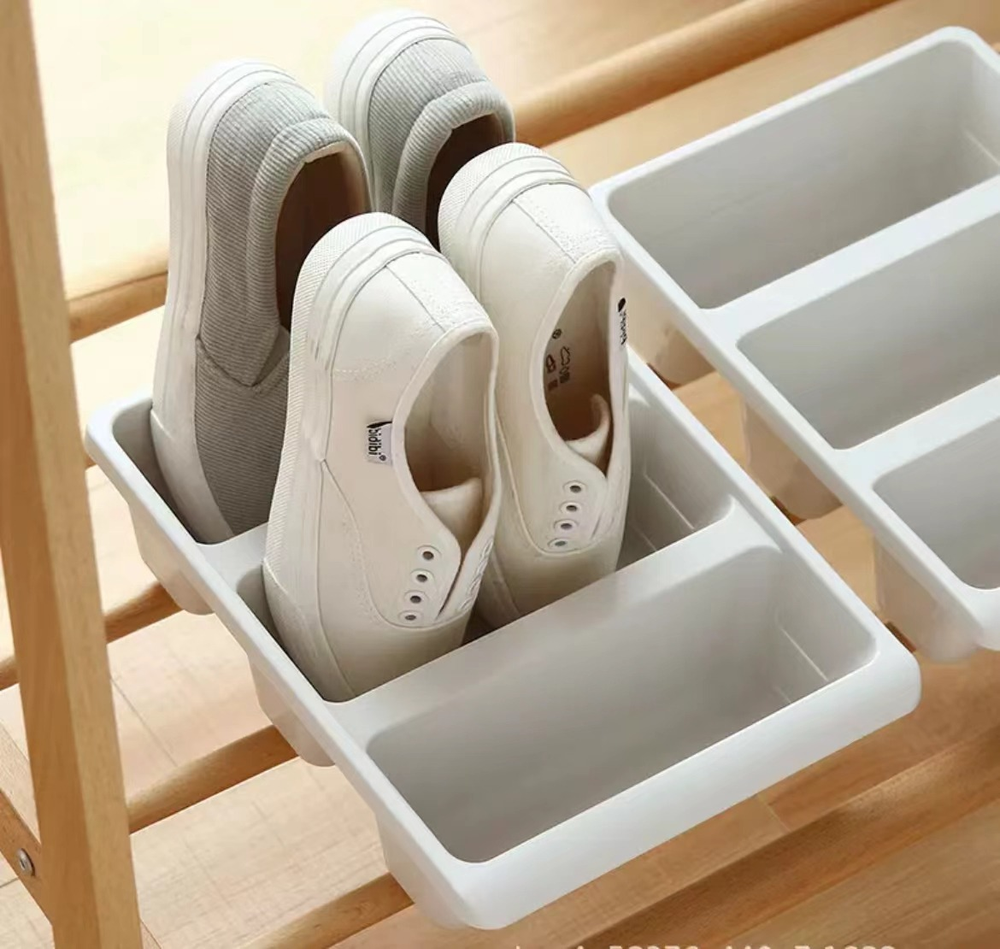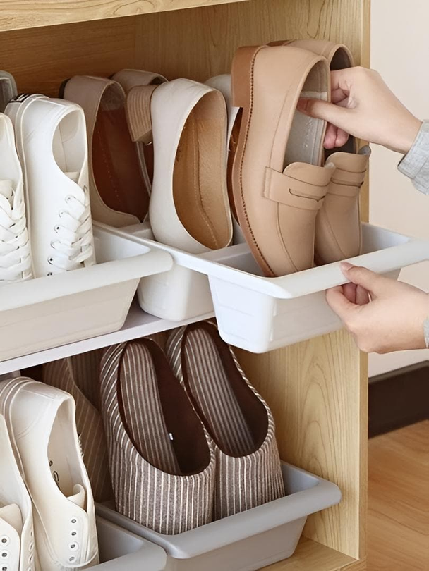 (Organizador de zapatos en vertical. Cuenta con dos opciones. Especial para dejar los zapatos organizados sin ocupar espacio).
