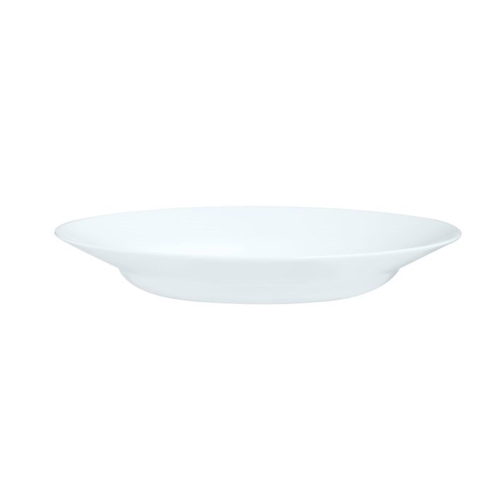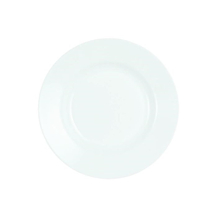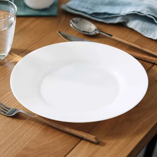 (Plato Playo en color blanco, ideal para aportar un toque de elegancia y belleza a su mesa. Resistente a microondas y lavavajillas).