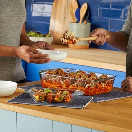 (Fuente de vidrio apta microondas, lavavajillas, refrigerador y congelador. Ideal para resaltar tus comidas).