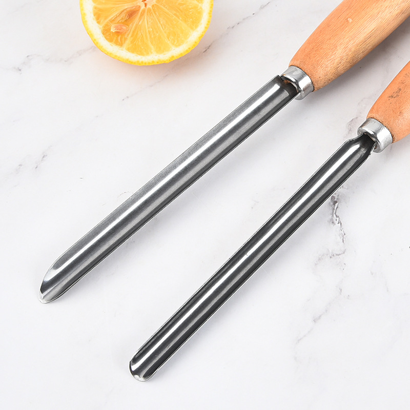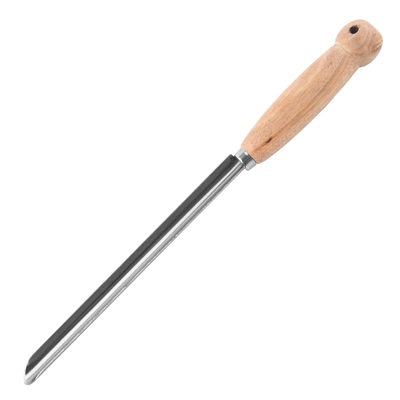 (mechador de carne con mango de madera. La aguja de mechar permite abrir orificios en la carne, pero además es el instrumento que se utiliza para rellenar dichos orificios, generalmente se introducen ingredientes que aporten jugosidad).