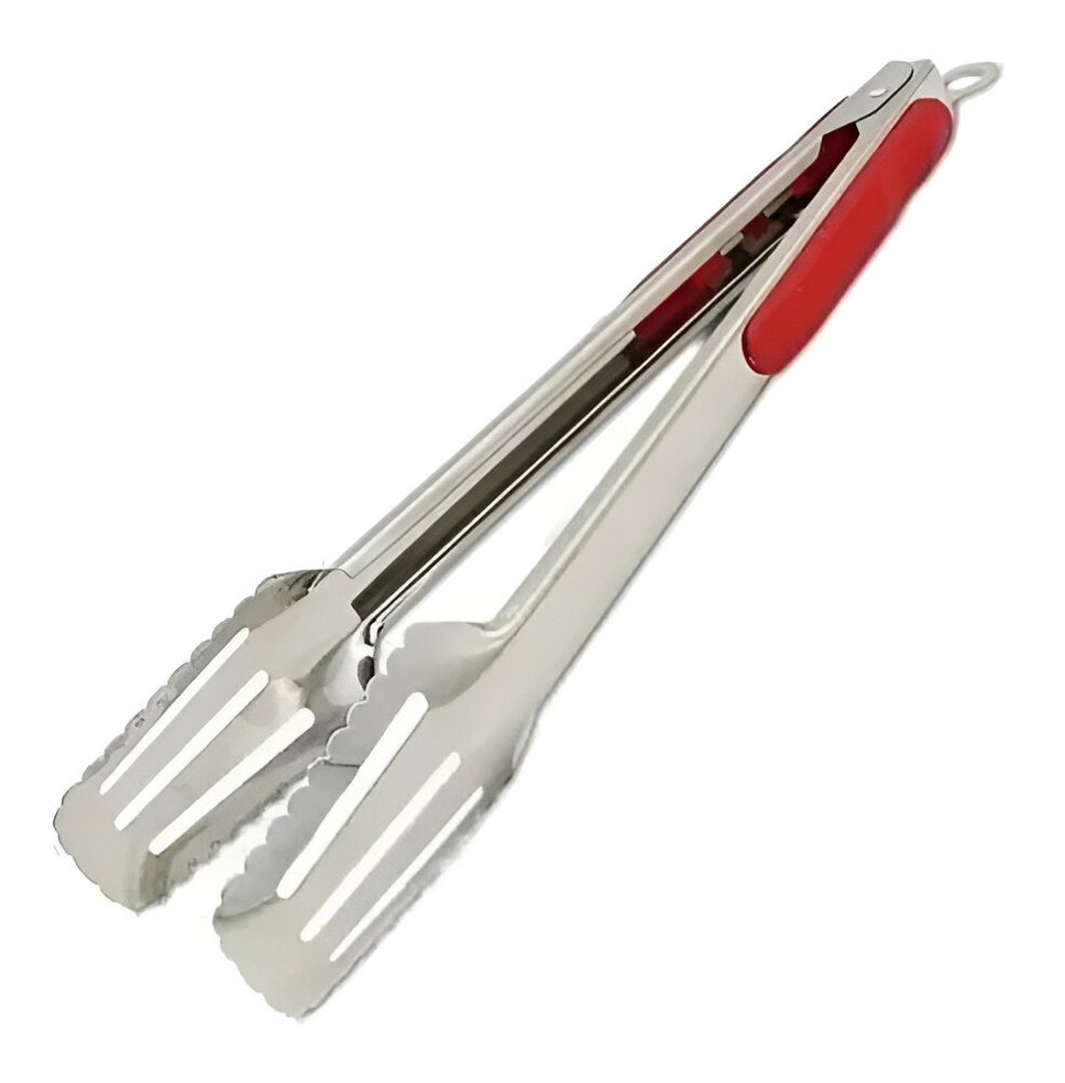( Esta pinza tiene mango de plástico y acero, puntas de acero y traba para abertura. Es perfecta para servir ensaladas y otros platillos de manera cómoda y eficiente. Su diseño es elegante y funcional).