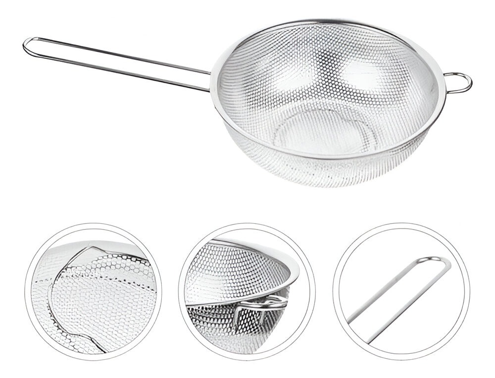 (fabricado con material de acero inoxidable, la superficie es lisa y fácil de limpiar. Con orificios distribuidos uniformemente para un drenaje más rápido y evitar que los alimentos se caigan).