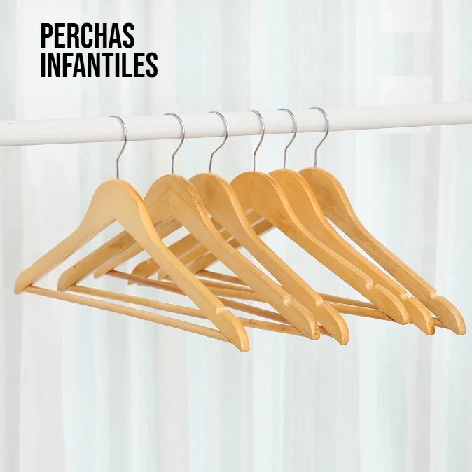 (Set 3 unidades de perchas de madera con su gancho de metal, giratorio).