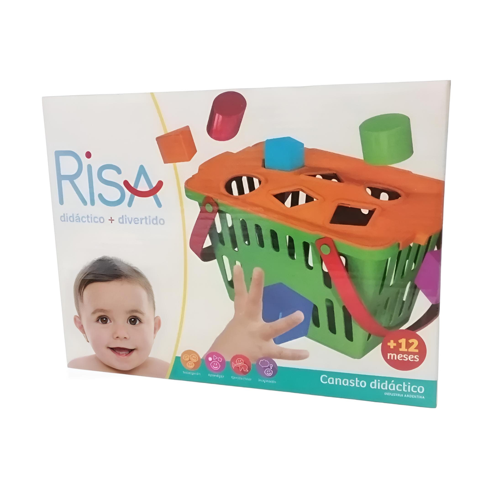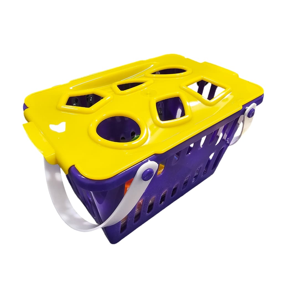 (Canasto didáctico para que los niños se entretengan en encastrar las formas donde van, además también los ayuda a aprender, a la coordinación sensorial, al ejercicio físico y al razonamiento. También es adaptable a discapacidades como a la intelectual y visual).