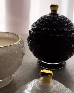 (Caramelera chica de vidrio con hermosos diseños de relieve. Ideal para guardar tus accesorios favoritos).
