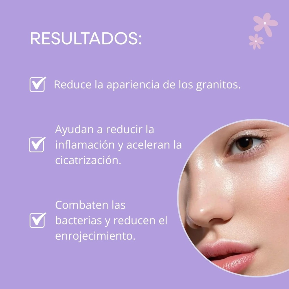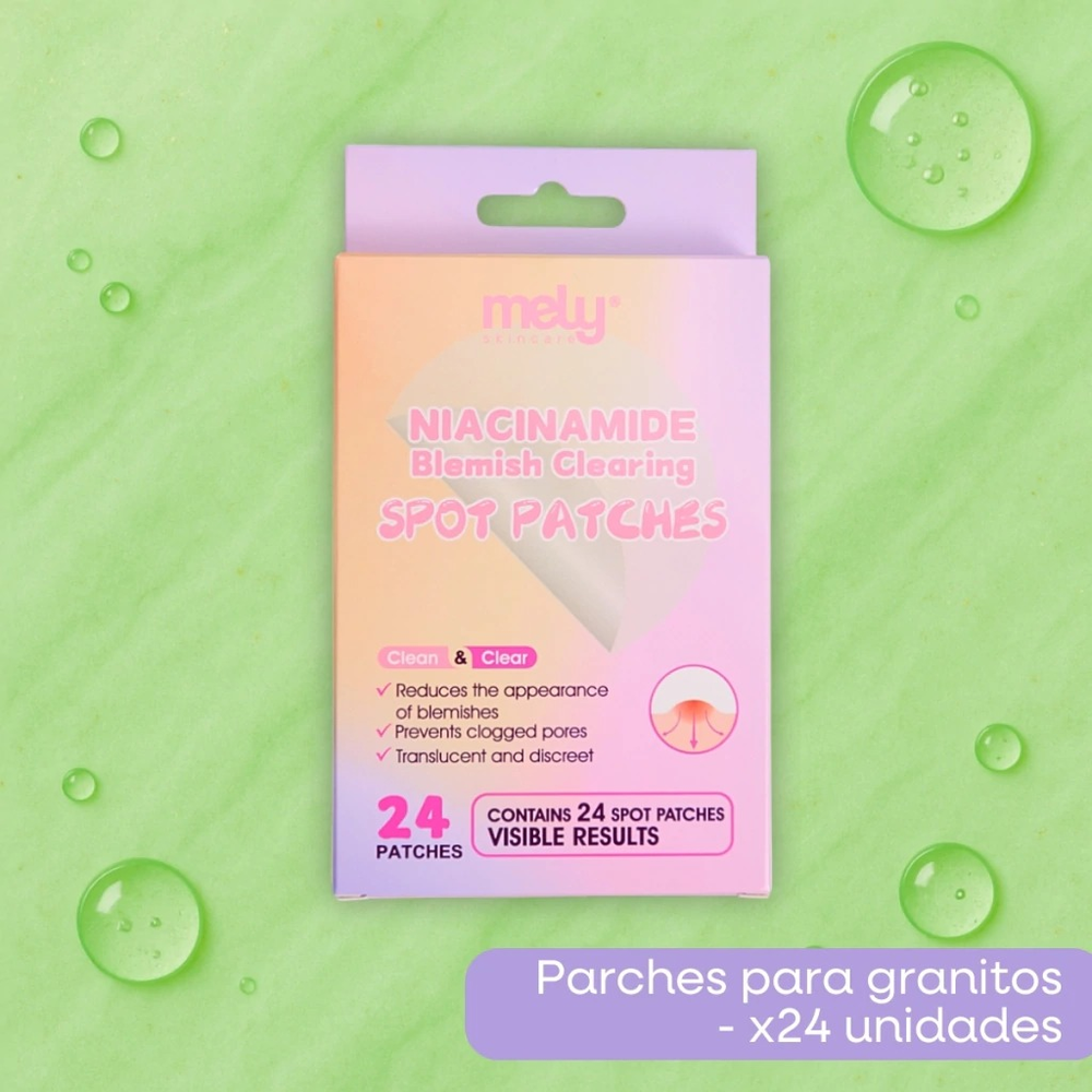 (Parches para Granitos x24U. "Mely". Son parches translúcidos y discretos, los cuales previenen la obstrucción de los poros. Ayuda a desinflamar entre otros beneficios, Caja x 24pcs. y 1pcs. contiene 24 Patches).