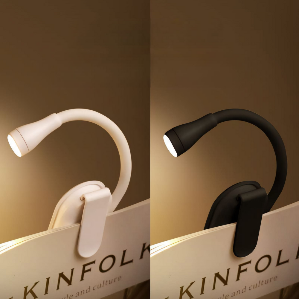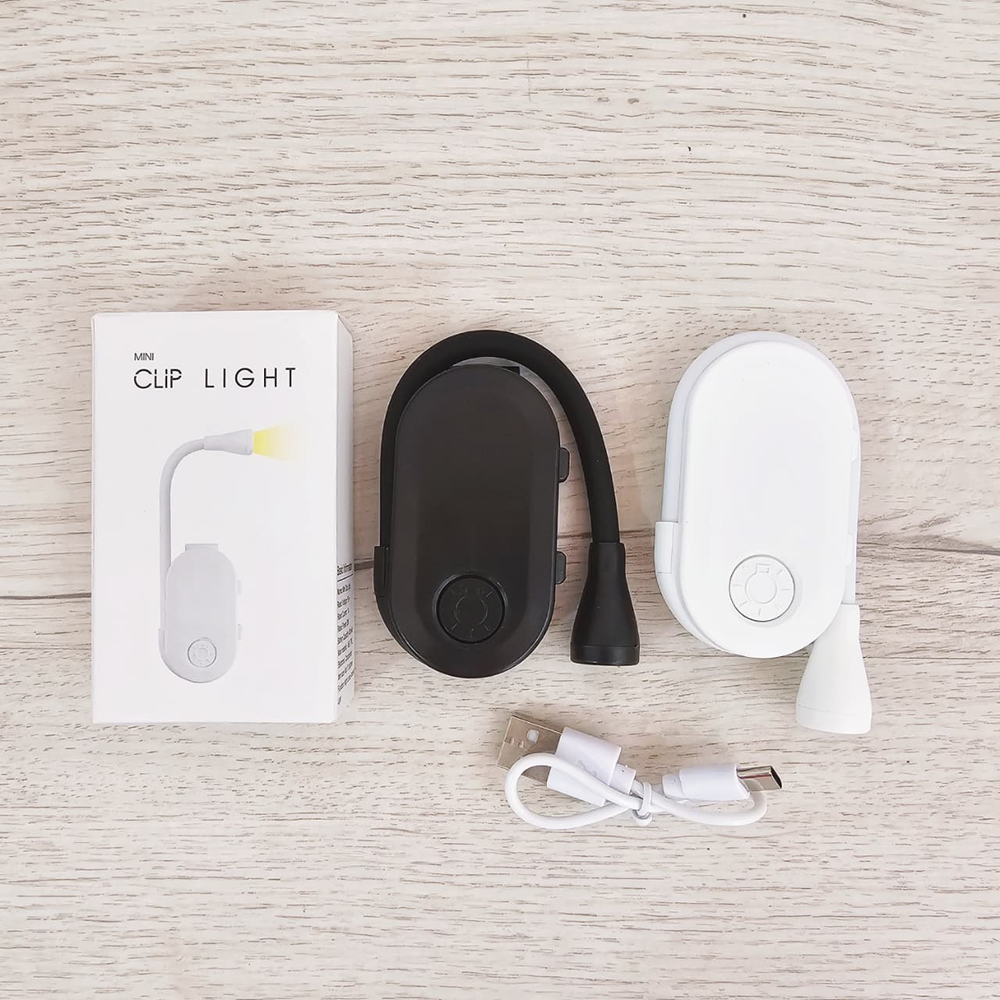 (Linterna con cargador USB, cuenta con tres modos de luz. Contiene pinza para poder colocarla a libros).