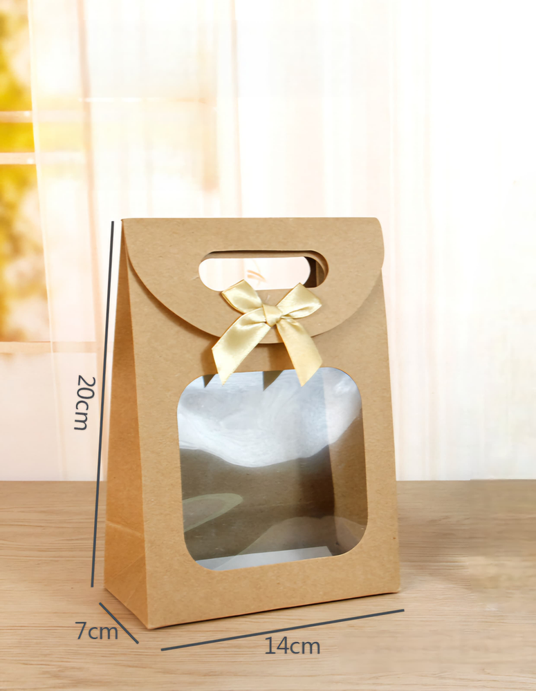 (Bolsas de regalo de cartón que cuentan con su centro transparente, y un moño que le da un toque especial a tus regalos).