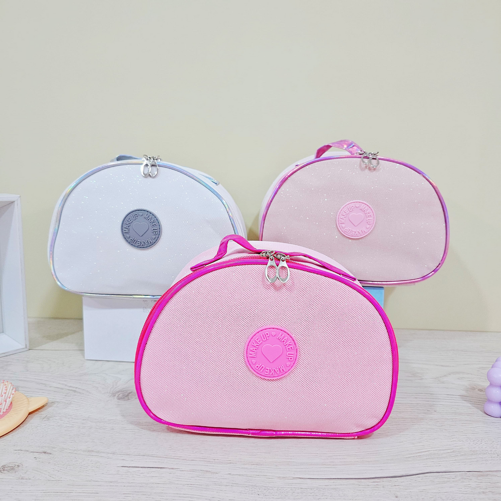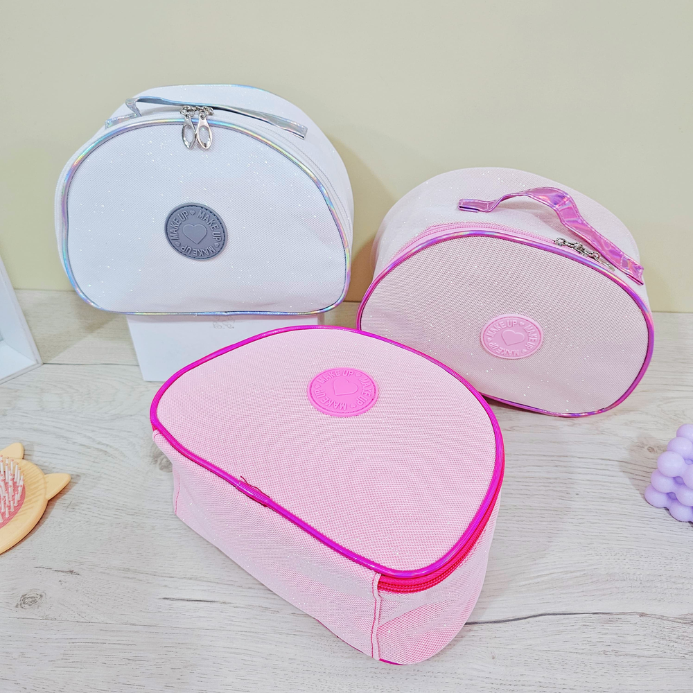 (Portacosmetico brilloso, cuenta con un compartimiento amplio y manija. Ideal para poder guardar tus maquillajes y llevarlo de viaje, ya que también permite ordenar todo sin ocupar espacio).