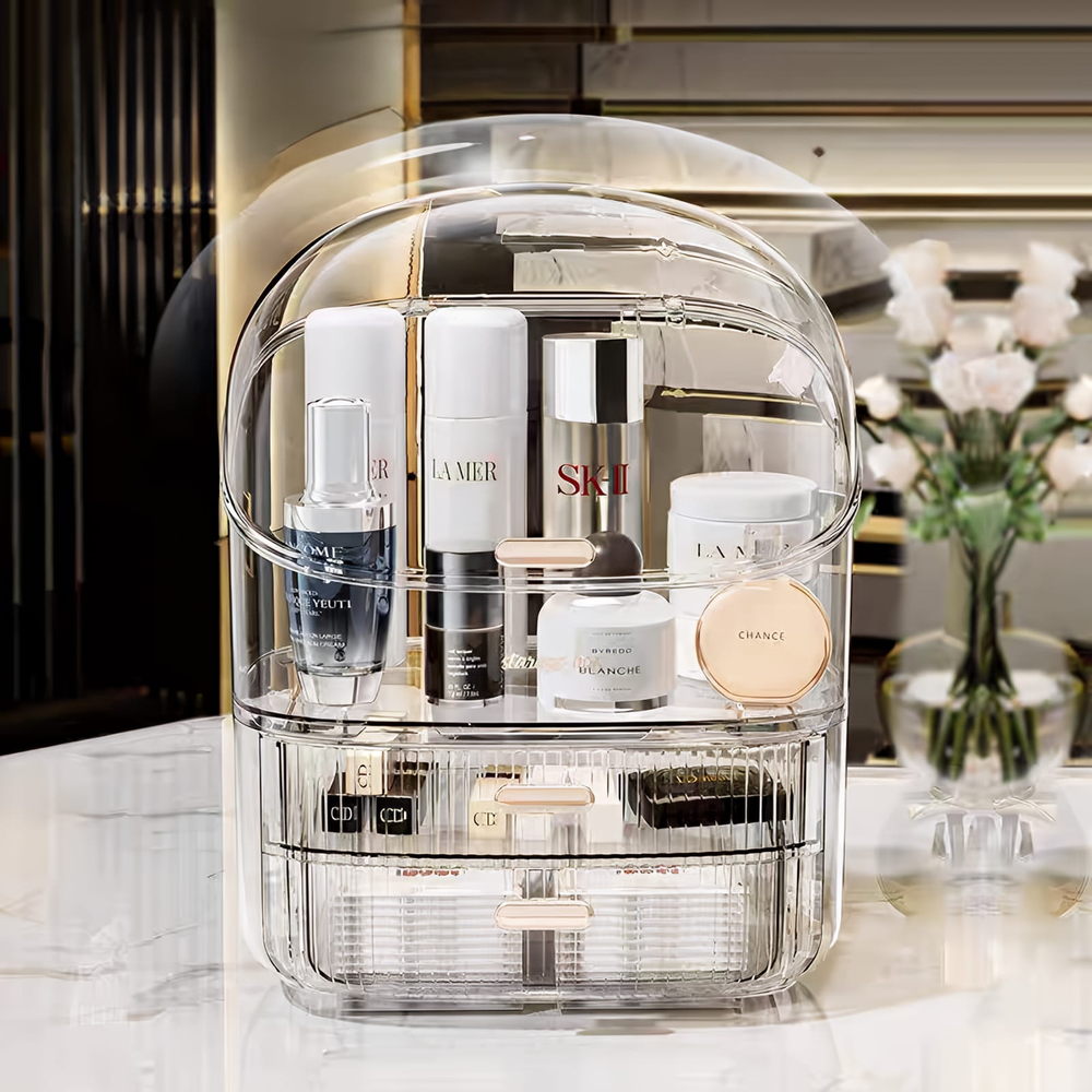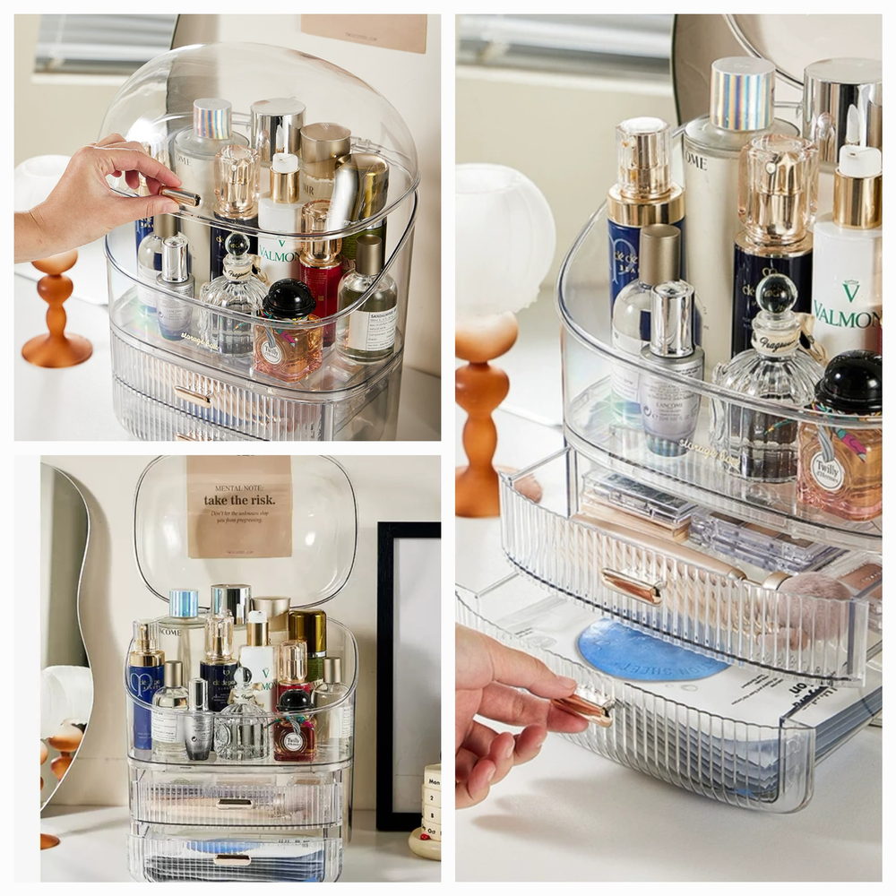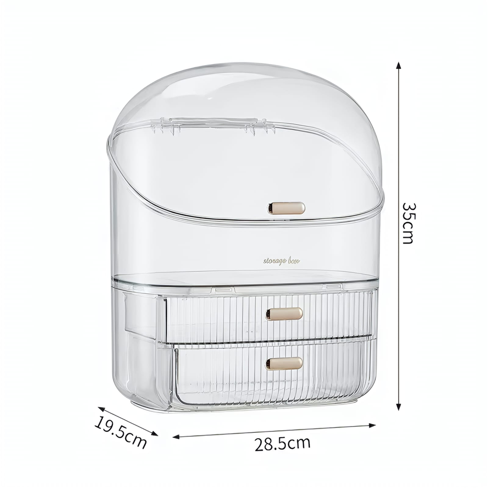 (Organizador multiuso que cuenta con dos cajones y un compartimiento amplio el cual permite colocar, lápices, brochas o lo que usted elija. Ideal para colocarlo en la habitación, en el baño o en su escritorio).