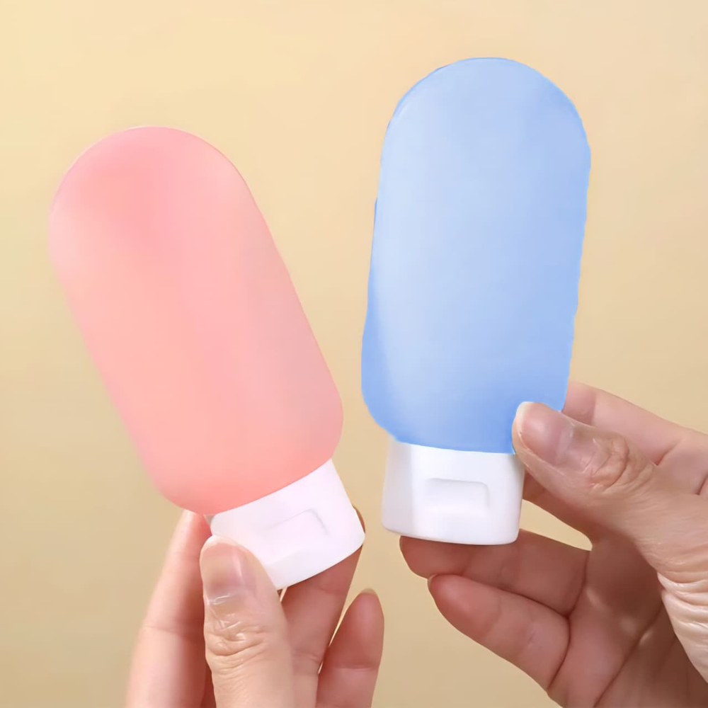 (Set x 4U. Neceser de viaje, que cuenta con 4 envases que son un material de plástico. ideal para poder sacar el producto fácilmente presionándolo. Son super útiles a la hora de llevarlos de viaje, ya que por su tamaño no ocupan espacio).