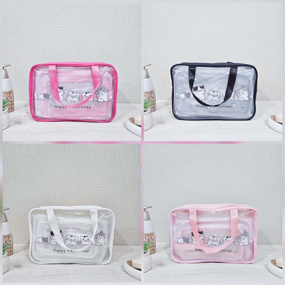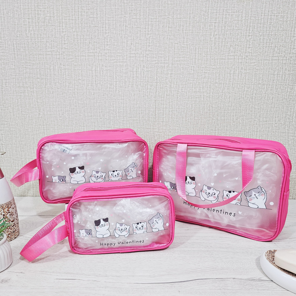 (Set x 3 portacosmeticos que sirven para guardar y organizar productos de belleza, maquillaje, artículos de tocador y accesorios personales, manteniéndolos ordenados y protegidos. Su diseño permite transportarlos fácilmente, siendo ideales para viajes o simplemente para mover los productos dentro del hogar, como del baño al tocador).