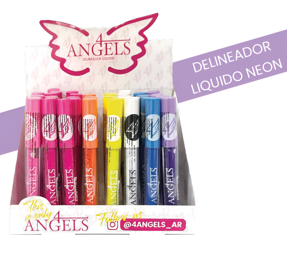 (Caja x48U. Delineador Liquido "4 Angels". Estos delineadores cuentan con 7 opciones diferentes. Ideal para que no falten en tus maquillajes. Cuentan con un buen pigmento).