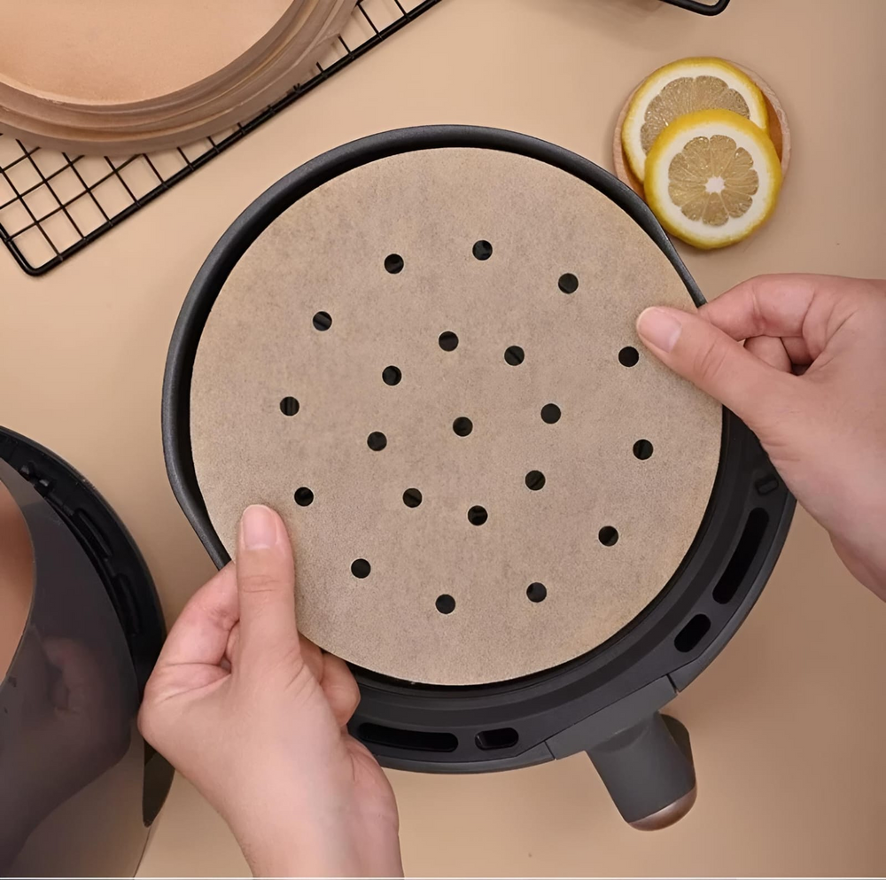 (El papel es antiadherente, por lo que puede retirar los alimentos fácilmente sin que se peguen. Ideal para freidora de aire o vaporera. El diseño de orificio transpirable del papel permite una excelente circulación del vapor. Los alimentos absorberán completamente el agua y se cocinarán rápidamente. Perfecto para usar en la vaporera para cocinar pan, bollos al vapor, pasteles. También se puede utilizar en la freidora de aire).