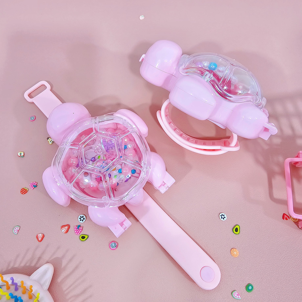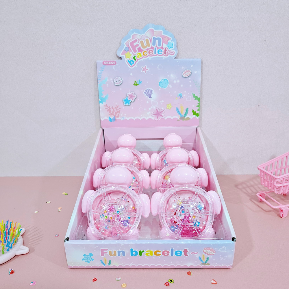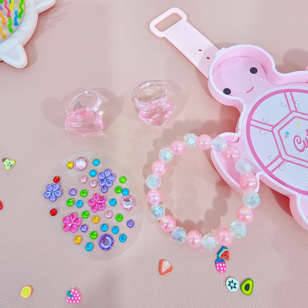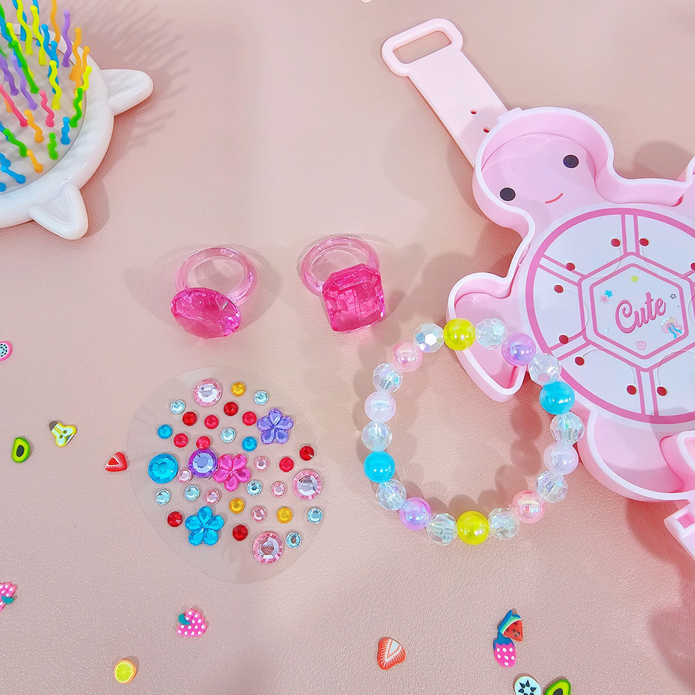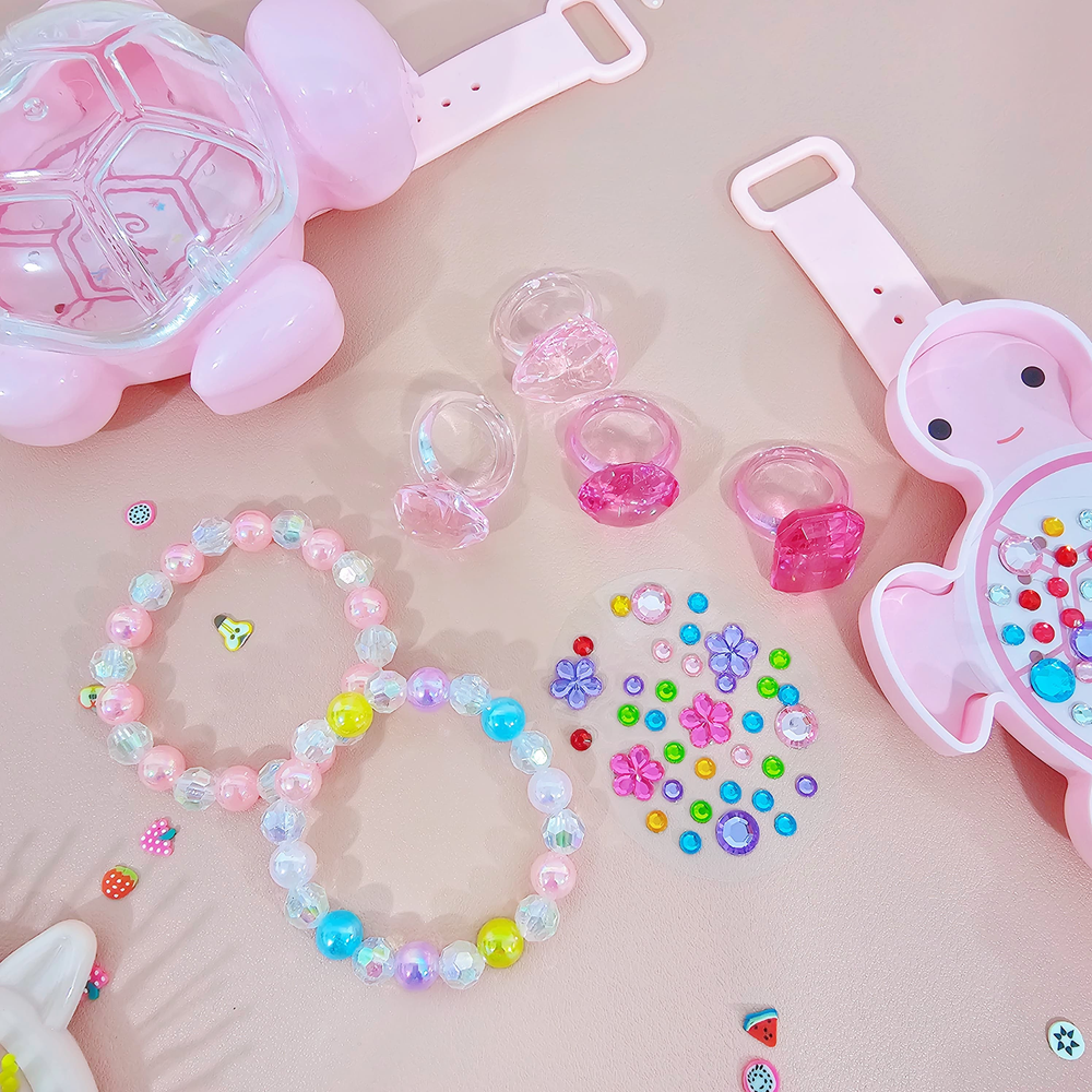 (Kit de Bijou para Niña diseño de tortuga. Trae consigo una pulsera, dos anillos y una plancha de strass).
